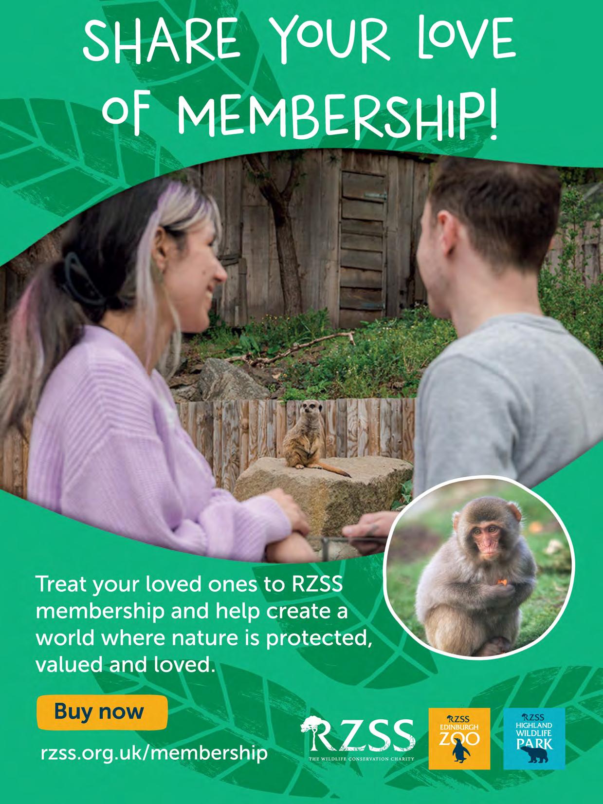 Your membership magazine and its envelope are made using paper from sustainably managed forests and are recyclable. For more information about RZSS,including details of our patrons, board and staff, visit rzss.org.uk