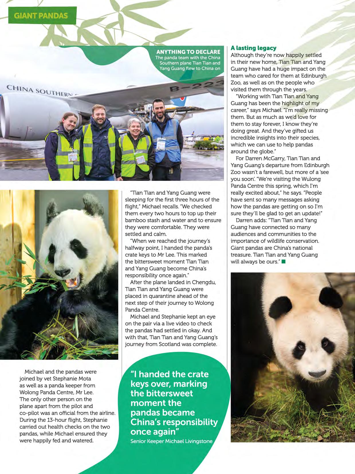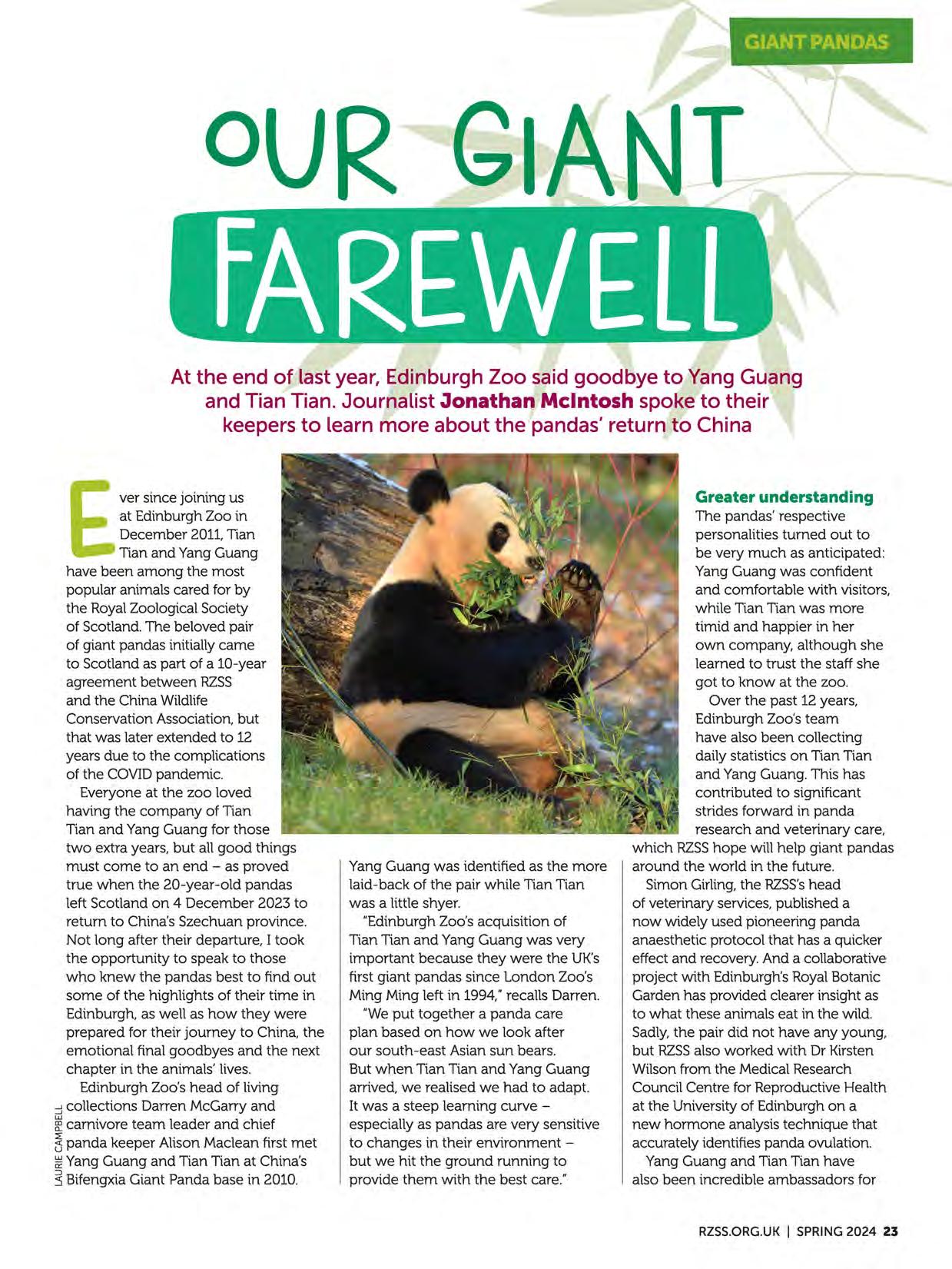 Contributing Editor Jonathan McIntosh spoke to two members of the team who cared for YangGuang and Tian Tian at Edinburgh Zoo to learn about the pandas'return to China.