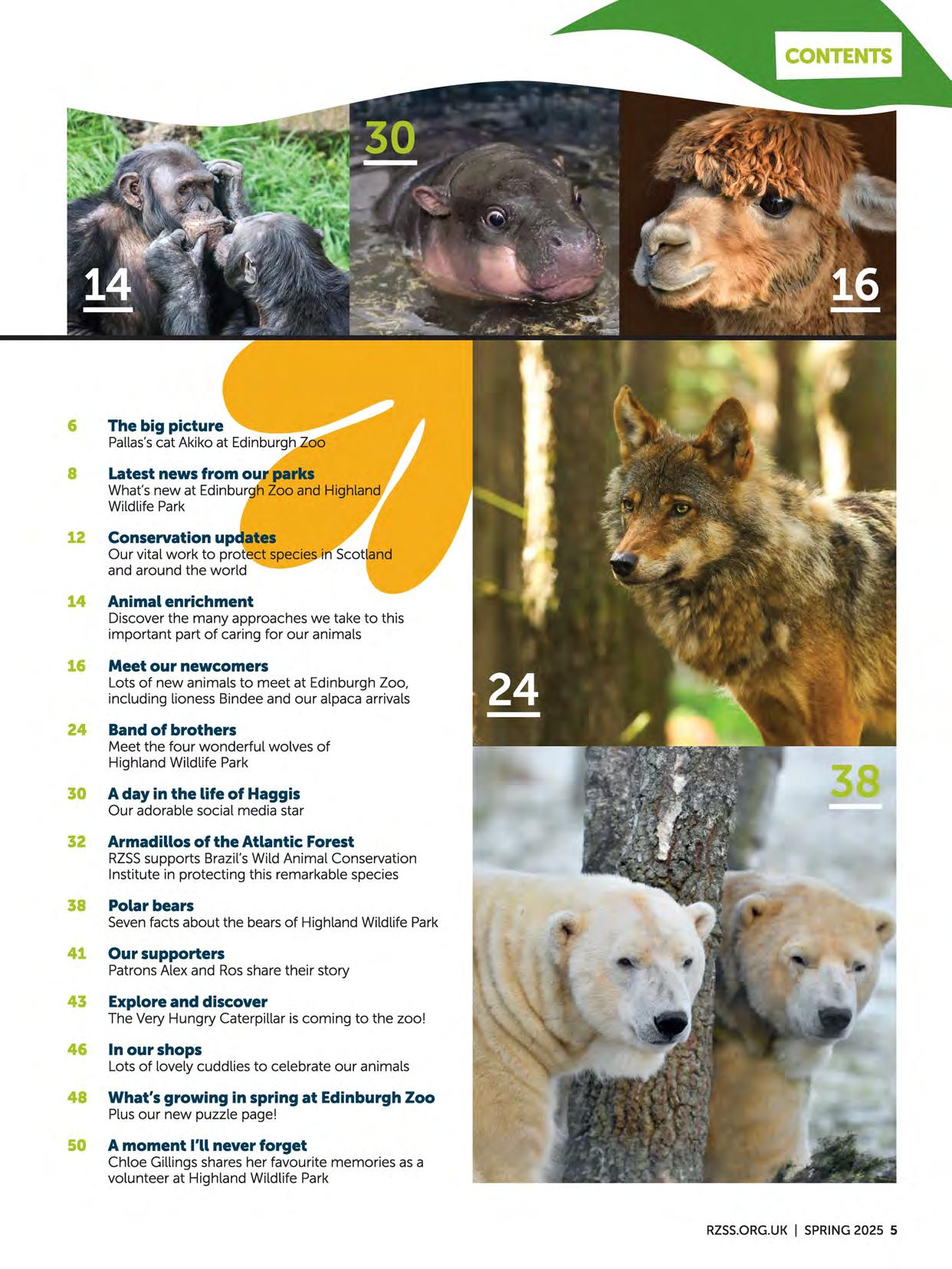 Your membership magazine and its envelope are made using paper from sustainably managed forests and are recyclable. For more information about RZSS,including details of our patrons, board and staff, visit rzss.org.uk