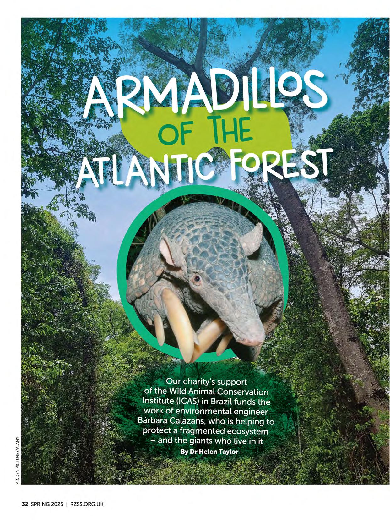 32 Armadillos of the Atlantic Forest RZSSsupports Brazil's Wild Animal Conservation Institute in protecting this remarkable species
