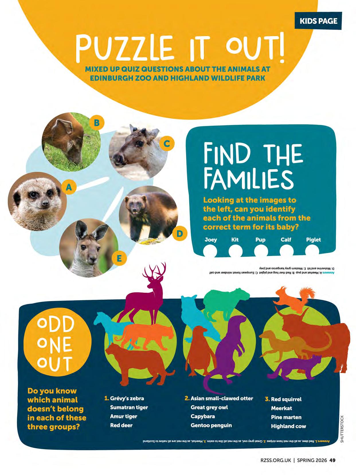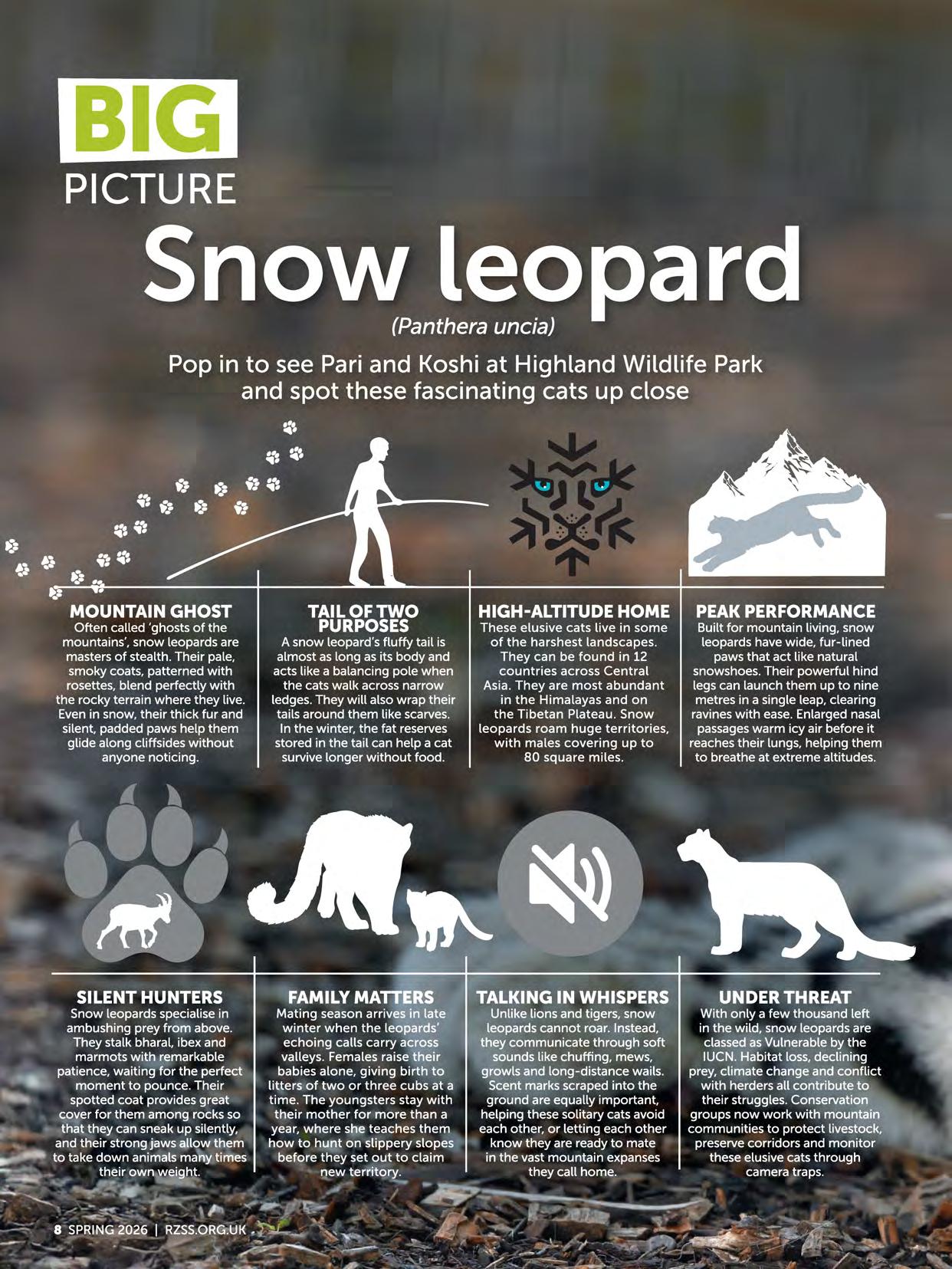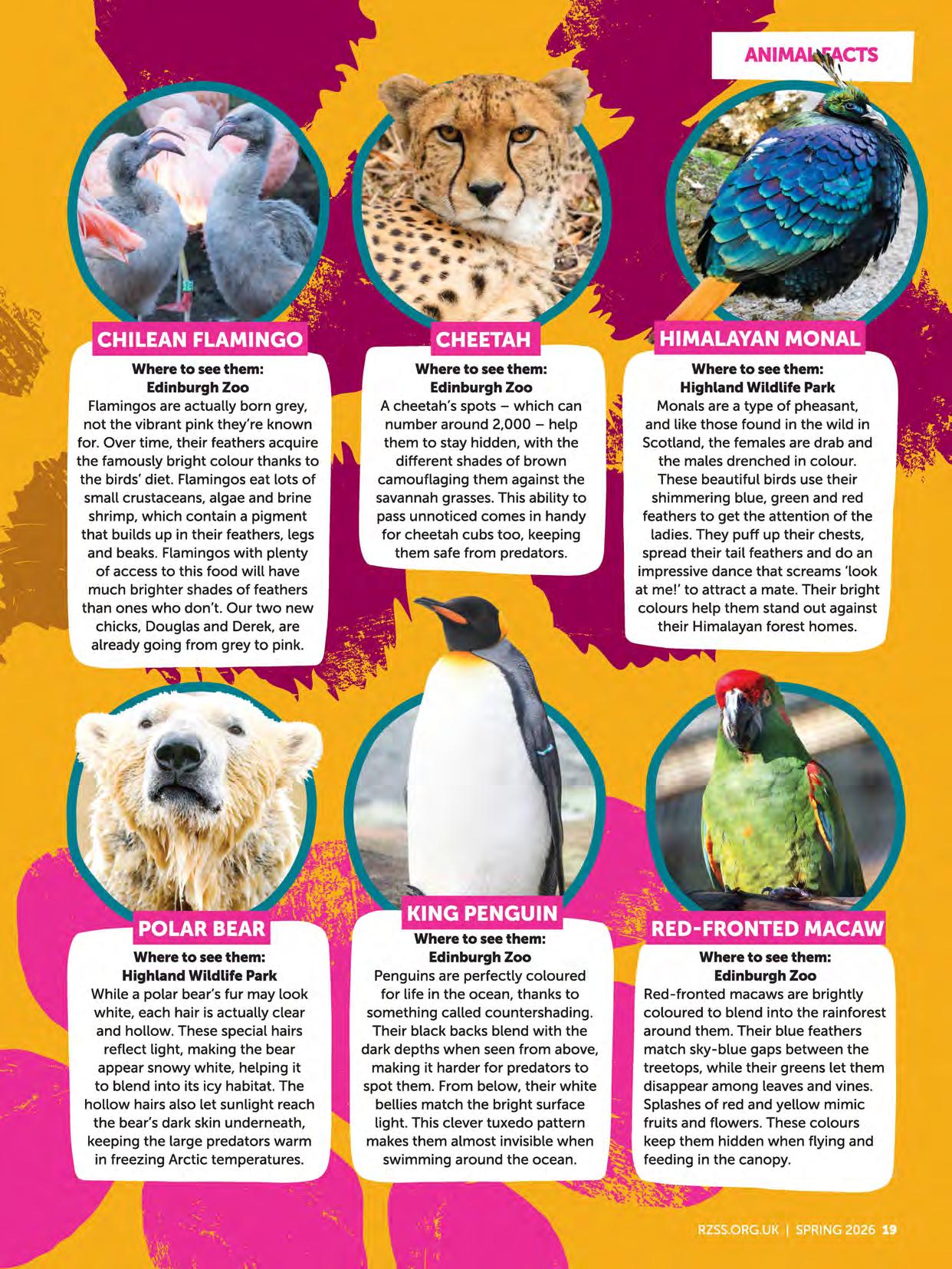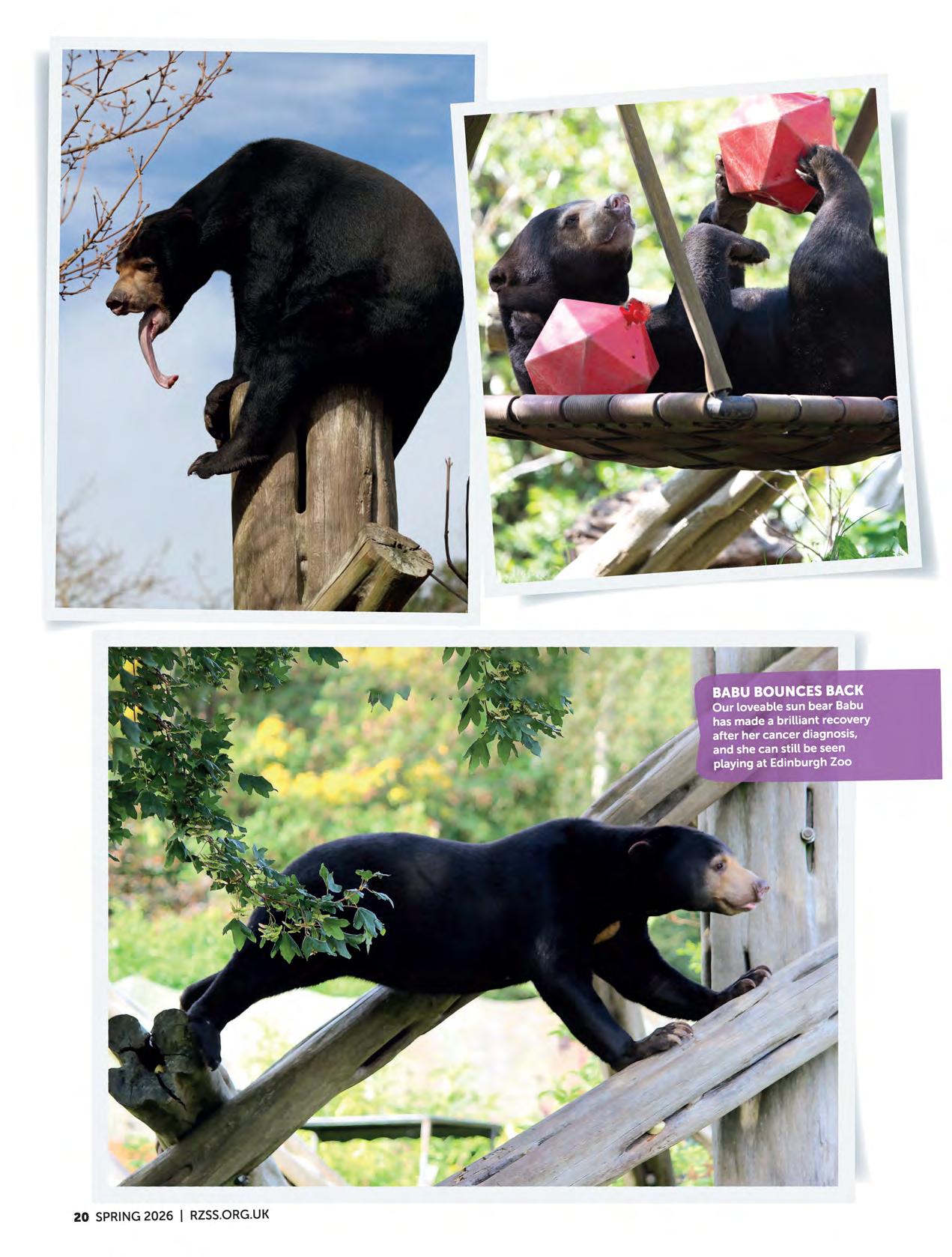 In what is becoming a frankly joyful tradition, the start to a new year at RZSShas meant new animals -and lots of them. Fresh faces have joined familiar ones at both Edinburgh Zoo and Highland Wildlife Park in these early months of 2026, including the first new female king penguins to waddle into Penguin Rock for more than 10 years. They were greeted, as is only right, by Sir Nils, the world's most senior ranking animal. You can get to know some of these new arrivals -also including Domino the cheetah, Rajath the sloth bear and Babsie the chimpanzee -on page 14.