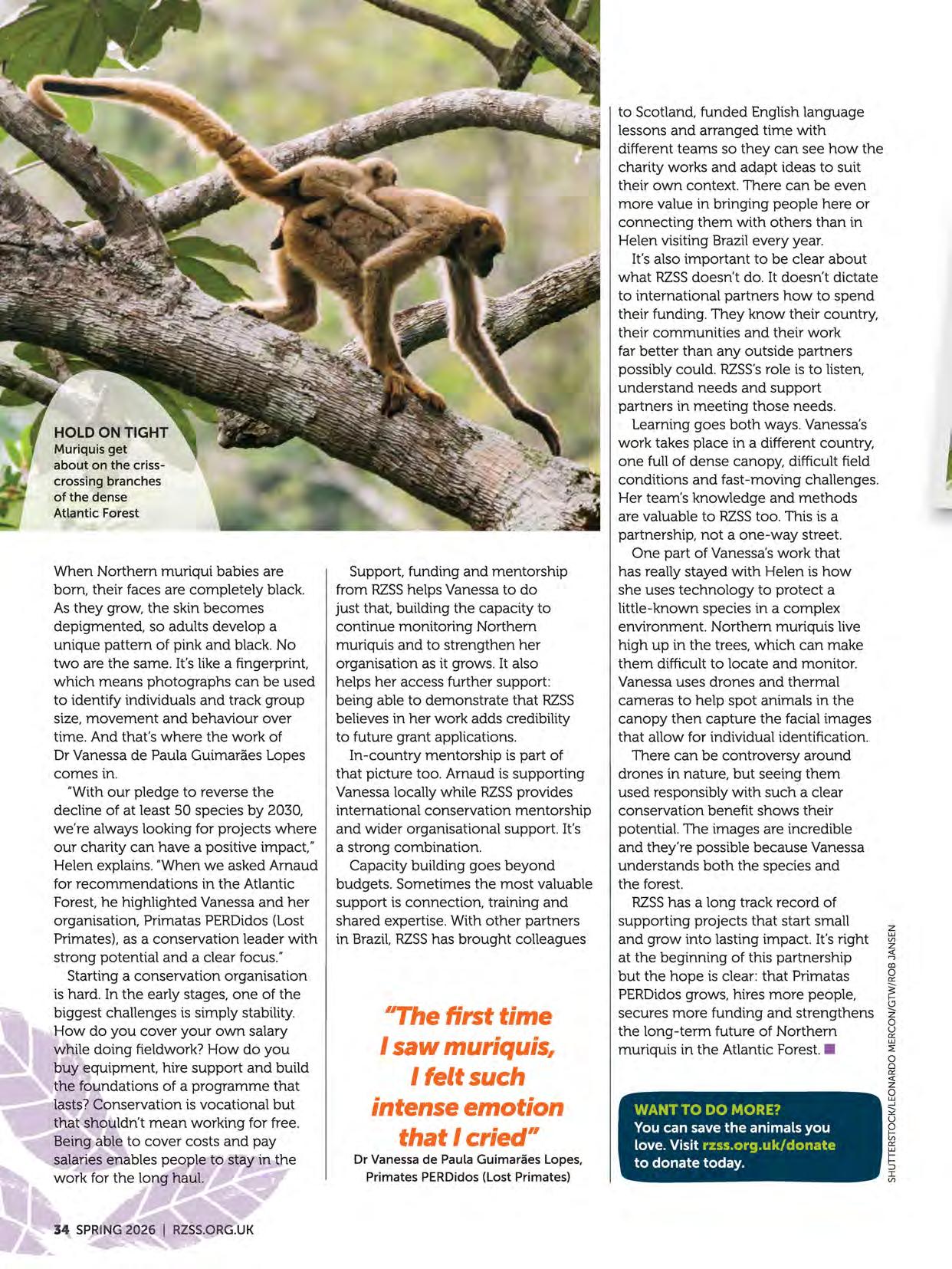 Your membership magazine and its envelope are made using paper from sustainably managed forests and are recyclable. For more information about RZSS,including details of our patrons, board and staff, visit rzss,org,uk
