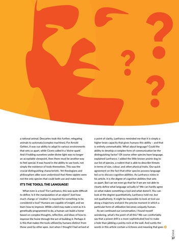 to feel special. It was found in the ability to use tools, not