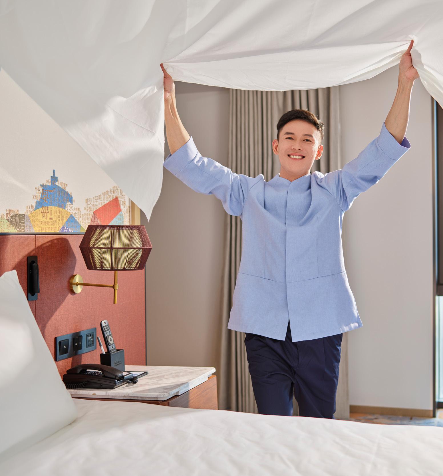 Greet your guest with Brighthearted hospitality. Introduce yourself, share F&B and housekeeping info and ask them to let you know if they need anything.