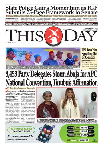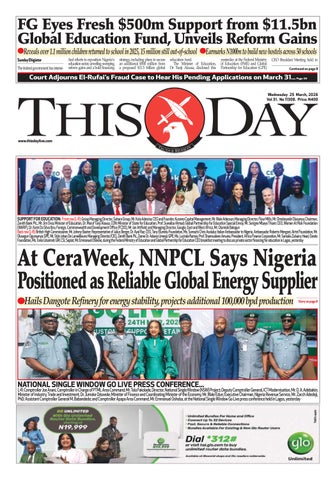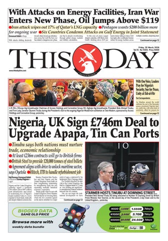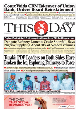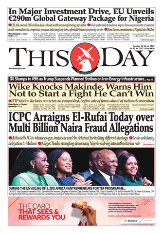 Founded on January 22, 1995, THISDAY is published by THISDAY NEWSPAPERS LTD., 35 Creek Road Apapa, Lagos, Nigeria with offices in 36 states of Nigeria , the Federal Capital Territory and around the world. It is Nigeria's most authoritative news media available on all platforms for the political, business, professional and diplomatic elite and broader middle classes while serving as the meeting point of new ideas, culture and technology for the aspirationals and millennials. The newspaper is a pu