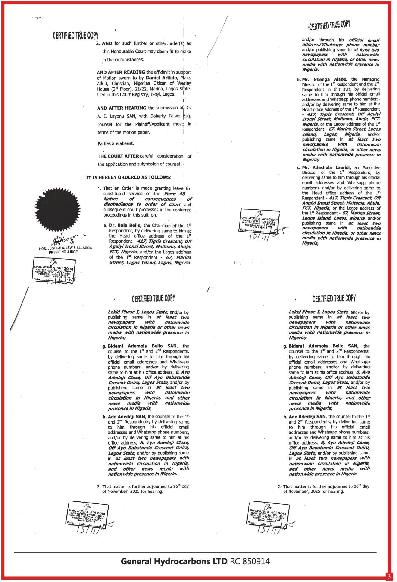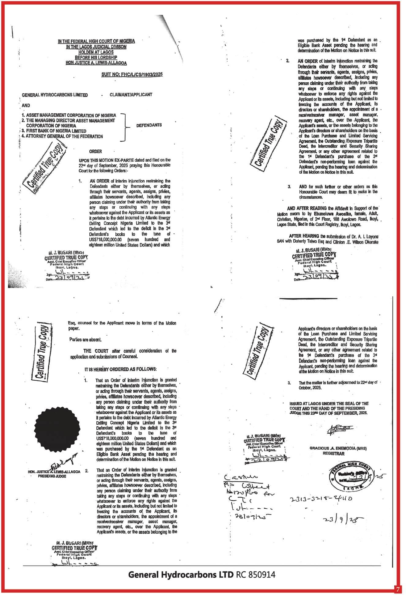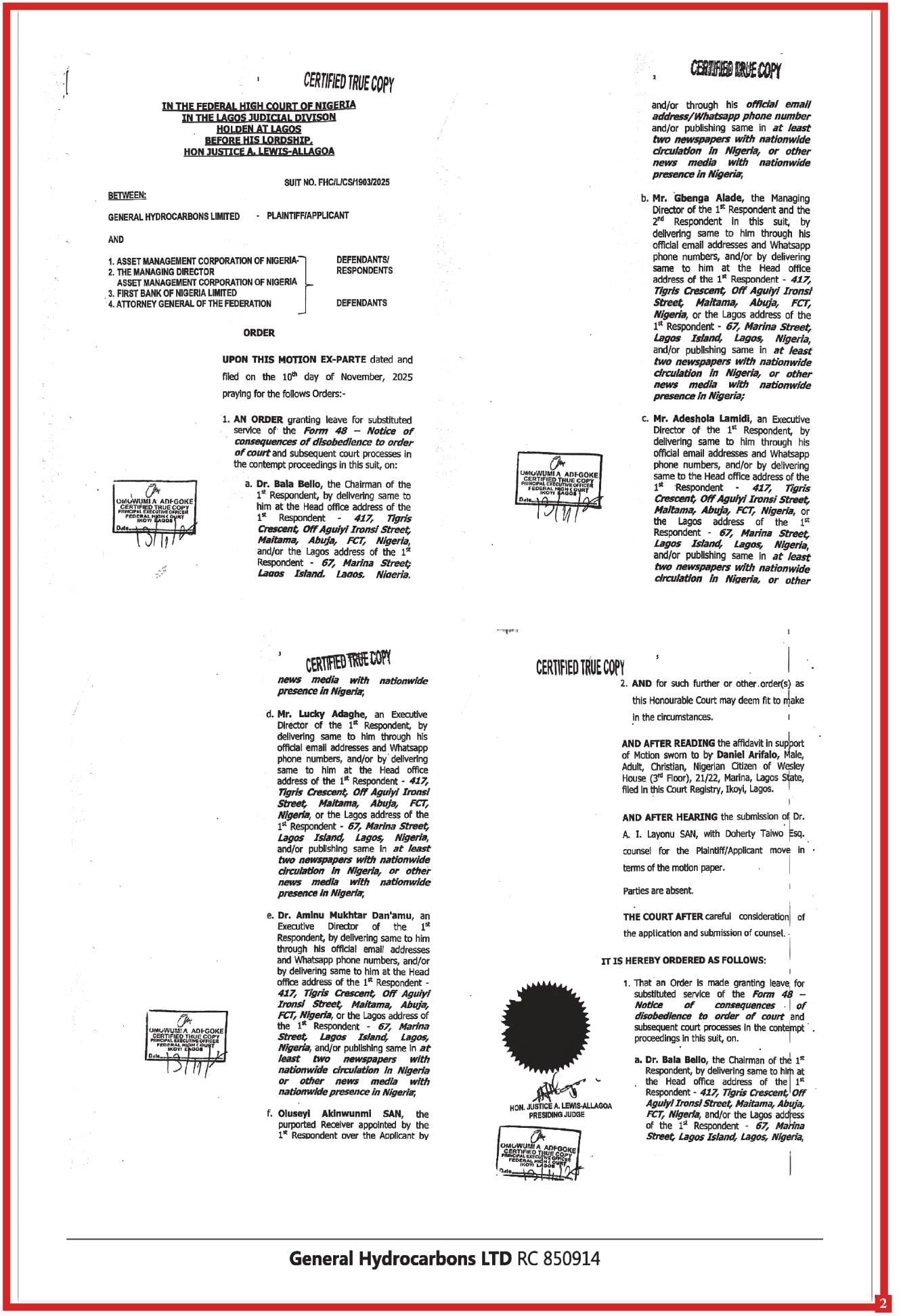 Akinwunmi, Ademola-Bello SAN, Adedeji SAN face contempt, debarment and de-robing petitions to legal and judicial authorities for disobeying court orders with impunity and bringing the judiciary into disrepute General Hydrocarbons Limited (GHL), its Directors, and Shareholders have commenced contempt proceedings against senior officials of Asset Management Corporation of Nigeria (AMCON) for allegedly disobeying a subsisting order of a Federal High Court in Lagos, which restrained them from appointing a Receiver over GHL.