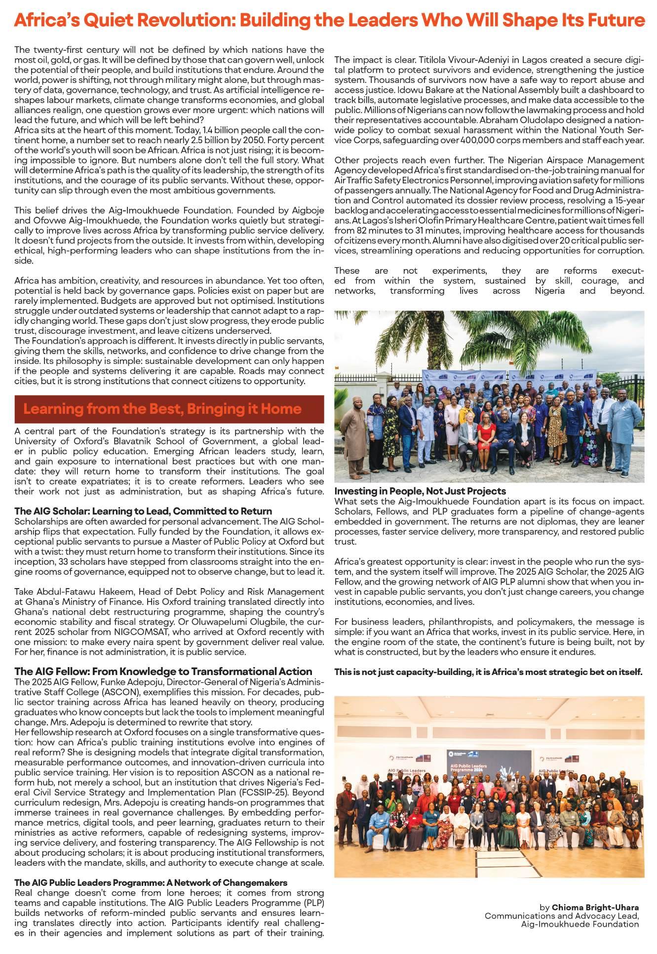 Elections aren’t performances; they’re the founda- tion of stability. It’s in everyone’s interest—from government to courts, parties, election officials, and security—to ensure elections are genuinely free and fair. When trust returns, legitimacy follows. When legitimacy grows, the future opens a bit more. In 2027, the biggest challenge may not be the voters or any political party, but the total loss of faith in the electoral process. To overcome it, we must replace empty promises about electoral reform and election management with clear, verifiable actions—one step at a time. That work must start now, with open choices everyone can see and verify. •Dr Dakuku Peterside is the author of two new books, “Leading in a Storm” and “Beneath the Surface”.