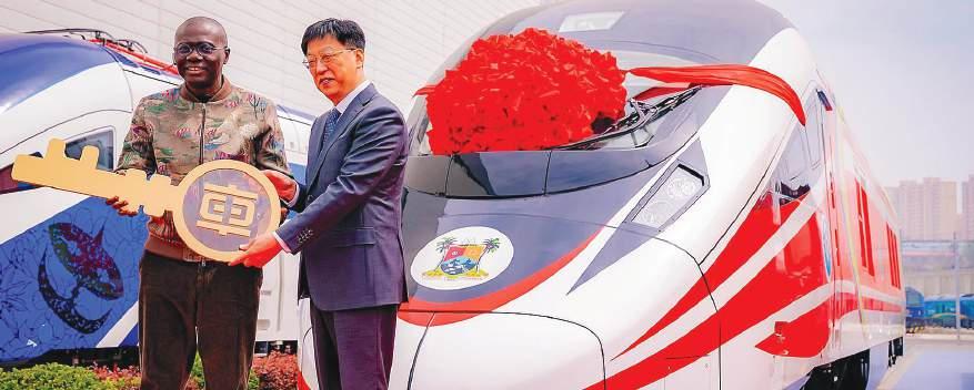SANWO OLU RECEIVING SYMBOLIC KEY TO 24 BRAND NEW CAR TRAINS IN CHINA...