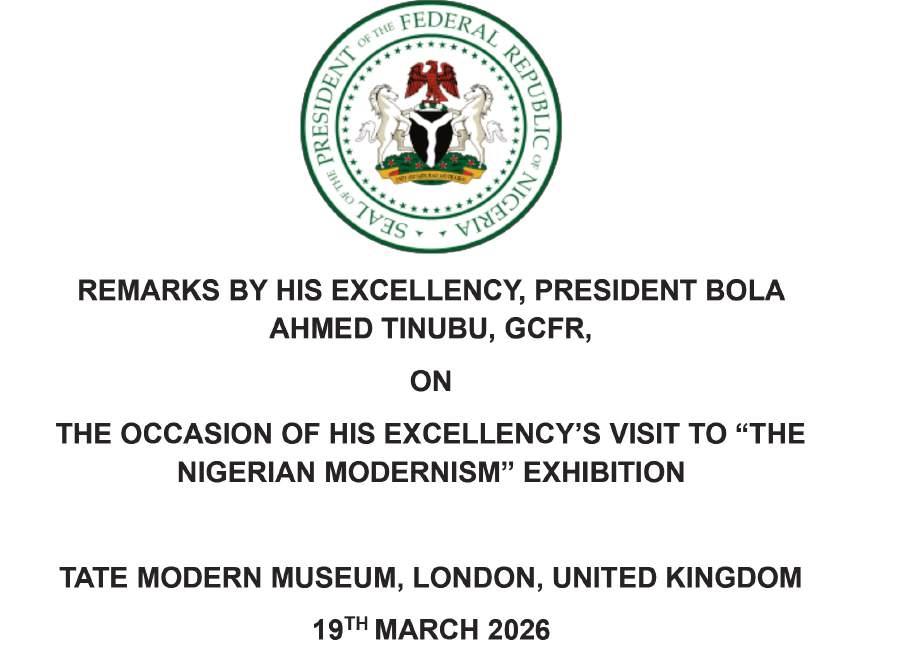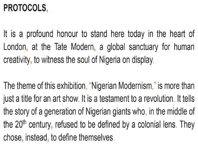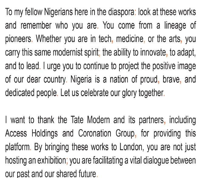 L-R: Mrs. Ofovwe Aig-Imoukhuede; Chairman of Access Holdings and Coronation Group, Mr. Aigboje Aig-Imoukhuede; President Bola Ahmed Tinubu; and First Lady, Senator Oluremi Tinubu during the President’s visit to the ongoing Nigerian Modernism exhibition at Tate Modern, sponsored by Access Holdings and Coronation Group, yesterday