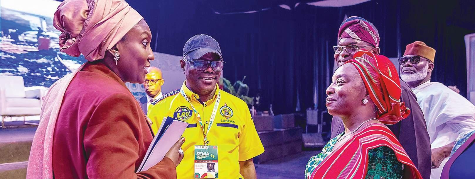 L-R: Director-General, National Emergency Management Agency (NEMA), Mrs. Zubaida Umar; Permanent Secretary, Lagos State Emergency Management Agency (LASEMA), Dr. Femi Oke-Osayintolu; and First Lady of Lagos State, Dr. Ibijoke Sanwo-Olu, at the National Conference of State Emergency Management Agencies (SEMA) in Lagos, yesterday
