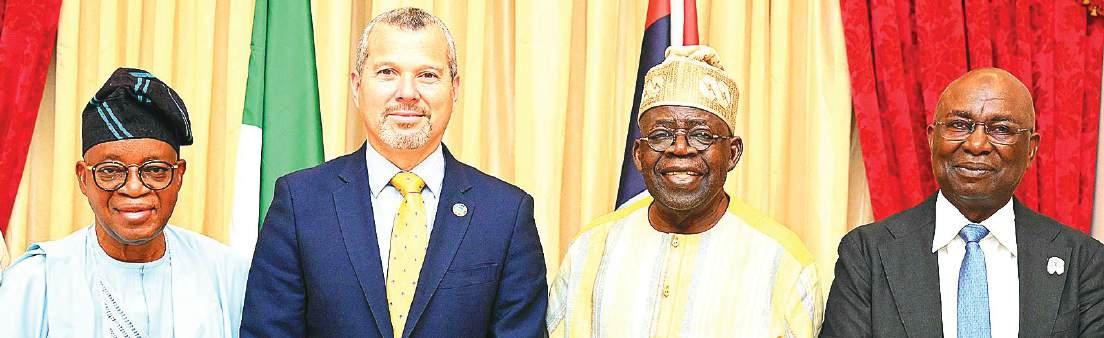 L-R: Minister of Marine and Blue Economy, Alhaji Adegboyega Oyetola; Secretary-General of International Maritime Organisation, Arsenio Dominguez; President Bola Ahmed Tinubu; and Director-General of the Maritime Administration and Safety Agency (NIMASA), Dr. Dayo Mobereola, during a courtesy visit to the President in his Lagos residence, yesterday