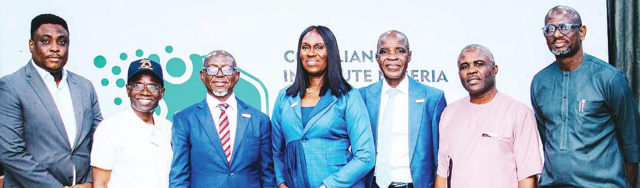 L-R: Director, Compliance Institute, Nigeria, Oyewole Giwa; Director, Compliance Institute, Nigeria, Wumi Adeniyi; President, Compliance Institute, Nigeria, Pattison Boleigha; Registrar/CEO, Compliance Institute, Nigeria, Bawo Egbakhumeh; Director, Compliance Institute, Nigeria, Rotimi Omotayo; Director, Compliance Institute, Nigeria, Obinna Okafor and member, Nigerian Institute, Compliance, Tagbo Nwajagu at the 2025 Annual General Meeting of the institute in Lagos....yesterday