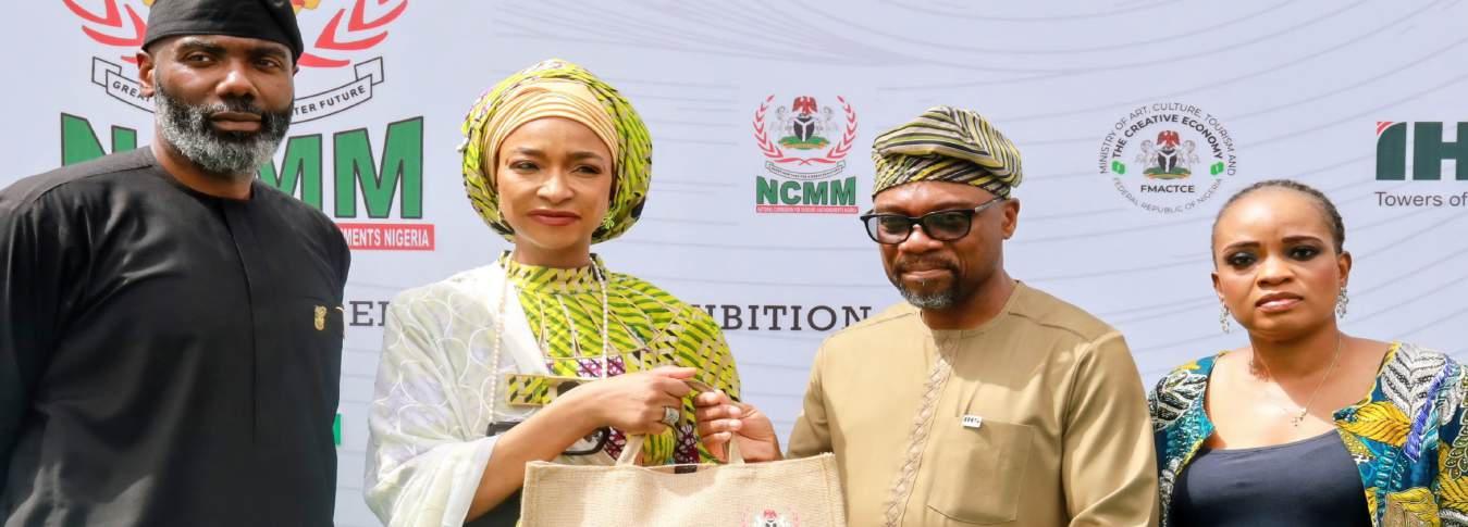 L-R: Mr Olugbile Holloway, Director General of the National Commission for Museums and Monuments (NCMM); Hannatu Musa Musawa, Minister of Art, Culture, Tourism and the Creative Economy, receiving a gift from Mr. Dapo Otunla, Senior Vice President and Chief Corporate Services Officer, IHS Nigeria; and Titilope Oguntuga, Director Sustainability, IHS Nigeria, at the inauguration of the newly refurbished gallery of the National Museums, Onikan, sponsored by IHS Nigeria, in Lagos, weekend