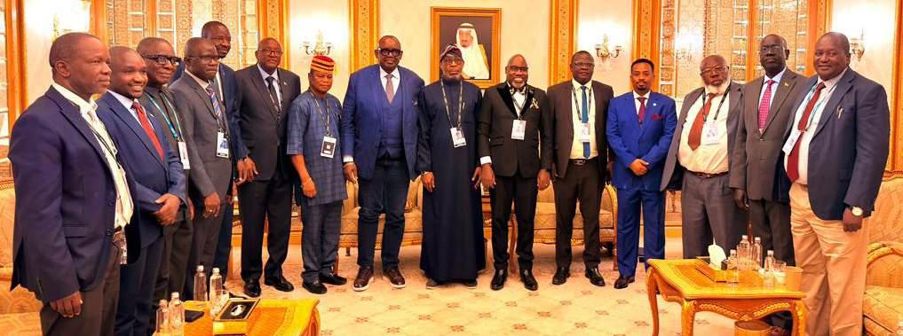 Minister of Solid Minerals Development and Chairman, Africa Minerals Strategy Group (AMSG), Dr. Dele Alake (middle). On his immediate left is the Vice-Chairman, AMSG and Minister of Mines, Democratic Republic of Congo (DRC), HE Louis Watum Kabamba; to his immediate right is Moses Engadu, Secretary- General, AMSG; Mr. Vincent Kedi, Commissioner for Licensing Administration, representing the Minister of Energy and Mineral Development of the Republic of Uganda (2nd right); and a cross-section of other African ministers of minerals/mining from Tanzania, Liberia, Mauritania, South Sudan, Eswatini, Sierra Leone, The Gambia, Burundi, Ghana, Somalia, Malawi at the 2nd Annual General Meeting (AGM) of the Africa Minerals Strategy Group (AMSG) held on the sidelines of the just concluded Future Minerals Forum (FMF), Riyadh, Saudi Arabia, yesterday