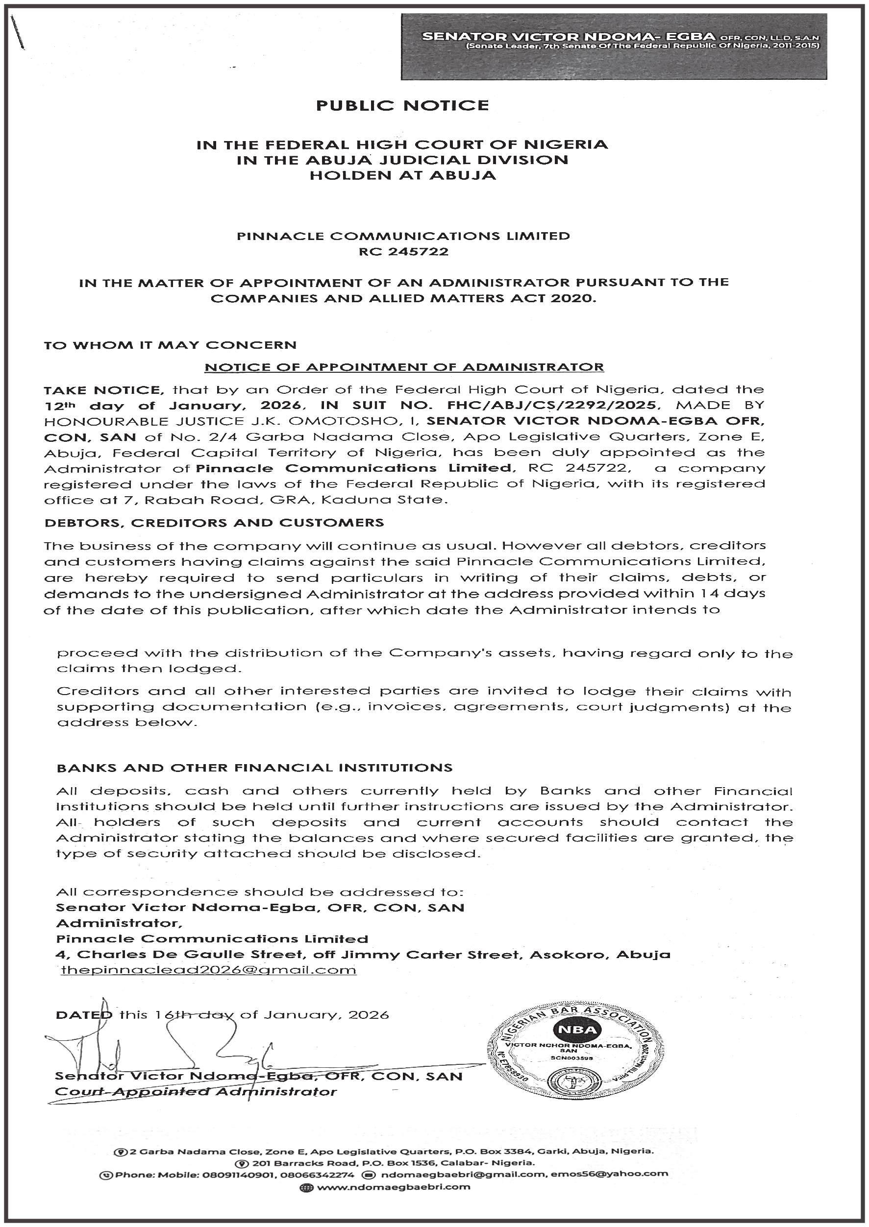 In a pre-action demand letter addressed to PointBlank News publisher Jackson Ude, Senior Editor (Africa) Ben Young, and Nigeria Editor Uduma Mba,