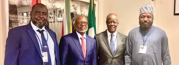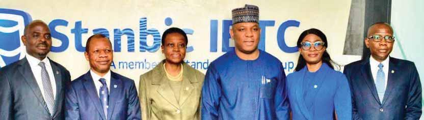 L-R: Chief Executive, Stanbic IBTC Holdings PLC, Mr. Kunle Adedeji; Chief Executive, Stanbic IBTC Bank, Mr. Wole Adeniyi; Chairman of Stanbic IBTC Holdings PLC, Mrs. Sola David-Borha; Hon. Minister of Steel Devt, Prince Shuaibu Audu; Deputy Chief Executive, Stanbic IBTC Bank PLC, Mrs. Bunmi Dayo-Olagunju; and Chairman, Stanbic IBTC Bank PLC, Mr. Yinka Sanni, during the minister’s courtesy visit to the financial institution’s Headquarters, Stanbic IBTC Towers, Victoria Island, Lagos