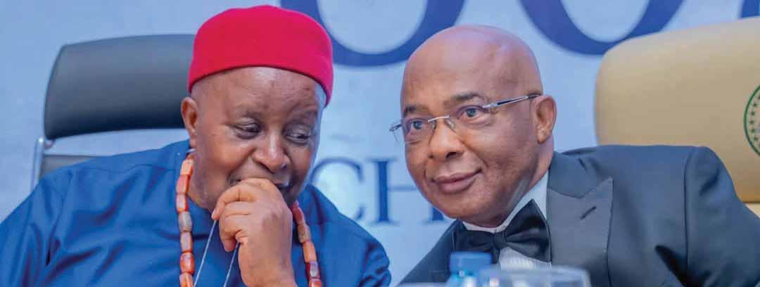 L-R: Group Chairman, Mr. Tony Elumelu and Group Managing Director/CEO, Mr. Oliver Alawuba, at the 63rd Annual General Meeting of United Bank for Africa(UBA) Plc, in Abuja, last Friday