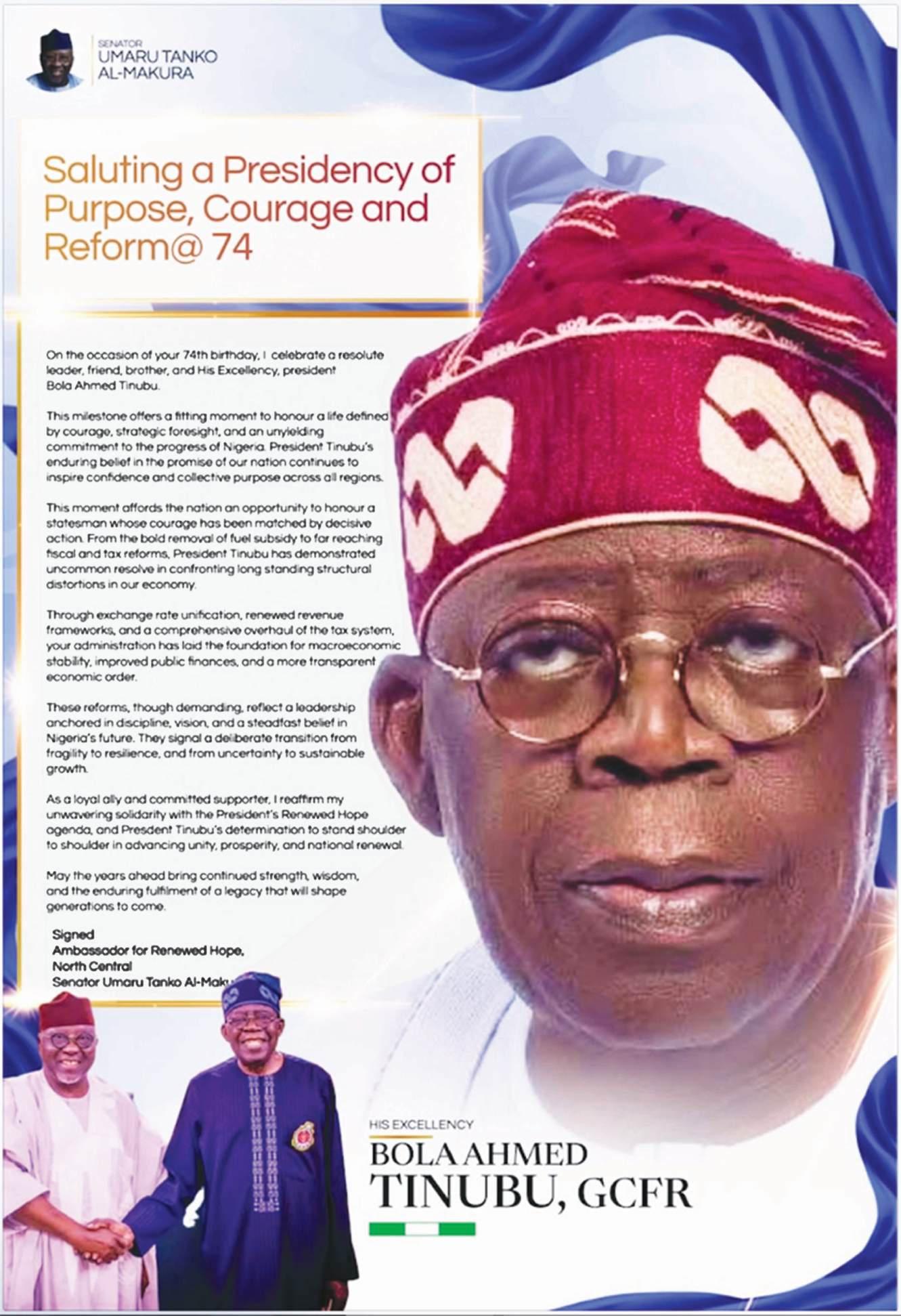 Sultan of Sokoto, represented by Etsu Nupe, Yahaya Abubakar, alongside other prominent traditional rulers and Islamic scholars, led special prayers for Tinubu as he marked his 74th birthday at the National Mosque in Abuja. The president arrived at the mosque a few minutes after 3pm, participated in the special prayers and later observed the Asr prayer with Muslim faithful before departing the venue.