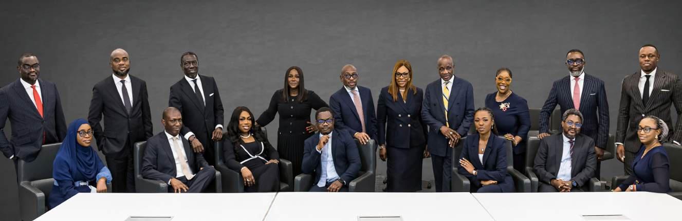 L-R (Standing): Kehinde Ojuawo, Chinedum Umeche, Asue Ighodalo, Ayotunde Owoigbe, Ken Etim, Abimbola Akeredolu, SAN, Femi Olubanwo, Stella Duru, Akindeji Oyebode, and Olamide Oshikoya. Partners of Banwo & Ighodalo on the firm’s 35th anniversary