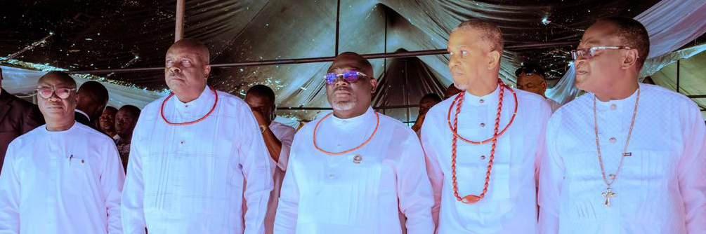 L-R: Member representing Isoko South II in Delta State House of Assembly, Hon. Ferguson Onwo; former Governor of Delta State, Chief James Ibori; Governor Sheriff Oborevwori; Senator representing Delta Central, Senator Ede Dafenone, and member representing Ughelli/Udu Federal Constituency at the House of Representatives, Hon. Francis Waive, during the funeral mass for former Principal of Urhobo College, Effurun/Government College, Ughelli, late David Siakpere, held at St. Andrew’s Anglican Church, Warri...recently