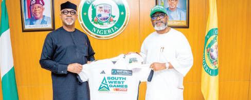 Ogun State Governor, Prince Dapo Abiodun, has given a resounding endorsement to the South West Games 2025, hailing the tournament as a groundbreakinginitiativepoised to unlock vast opportunities for youth empowerment, talent discovery and sustainable socioeconomic growth in the region. GovernorAbiodun made this declaration while receiving the President of the South West Games 2025, Dr. Lanre Alfred, and members of the Organising Committee at the State House in Oke Mosan, Abeokuta. The delegation, in recognition of the Governor’sunwaveringsupport for youth and sports development, presented him with a customised tournament jersey, a gesture that further cemented hiscommitmenttothelandmark