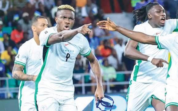 Victor Osimhen and teammates celebrate one of Super eagles two goals against rwanda yesterday