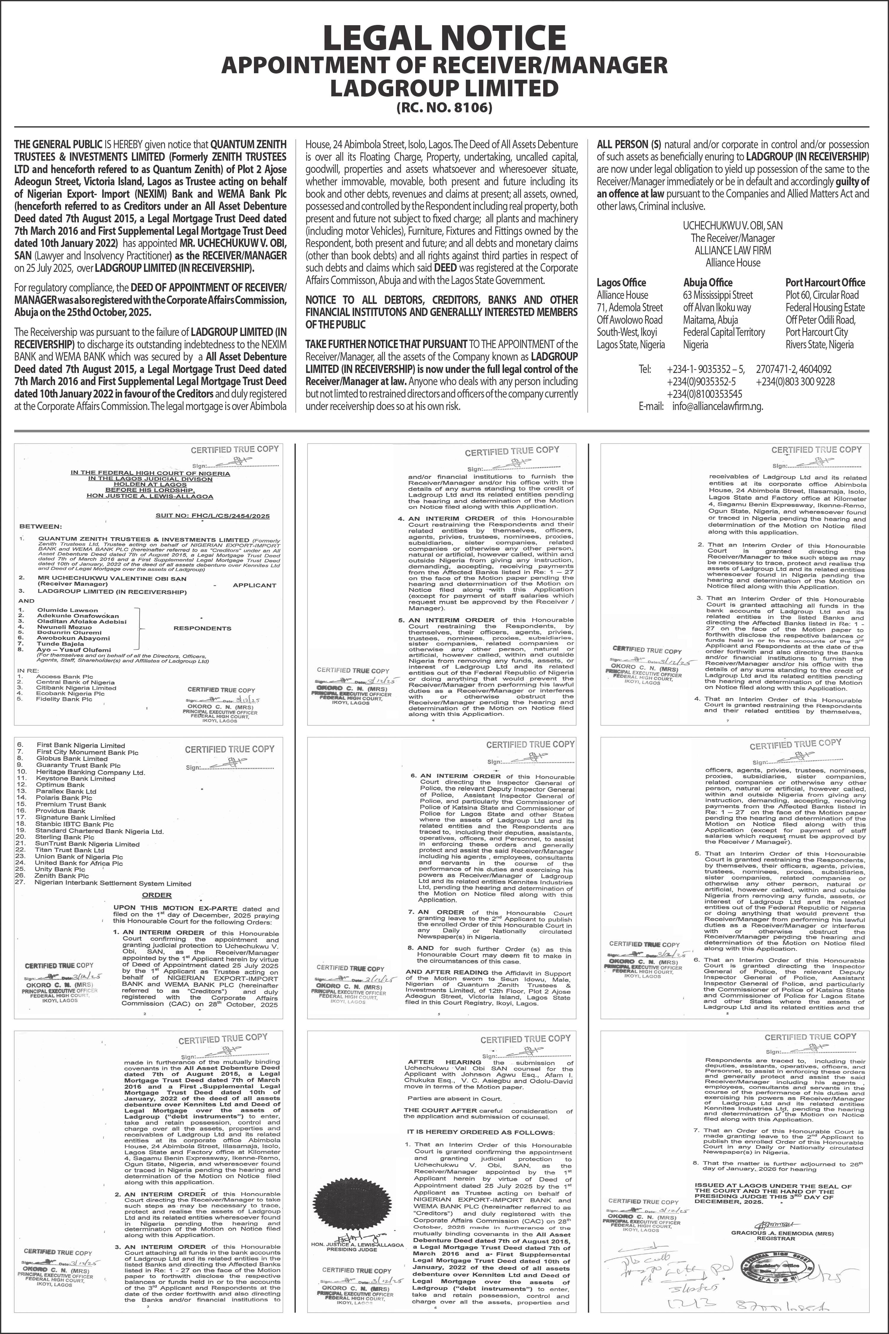 The court had adjourned the case to yesterday for motion. When the matter resumed in court, lead counsel to Amaewhule and 26 other