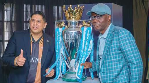 L-r: MD/CeO, Guinness Nigeria; Girish Sharma with Governor of Lagos State, Mr. Babajide Sanwo-Olu during the premier League Trophy Tour by Guinness at the State House, Marina, Lagos recently