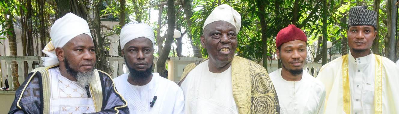 L-R: Chief Imam of Oluwanishola Estate Mosque, Imam Akintola Maroofdeen Awwal; Imam Sulaiman Akintola; Founder/Chairman of Eleganza Group of Companies, Chief Razaq Akanni Okoya; Imam Sodiq Maroof; and Abdulwasiu Olalekan, during the 2026 Eld-el-Fitr Prayers organised by Chief Okoya at his Oluwanishola Estate, Lekki–Ajah Expressway, Lagos …Friday