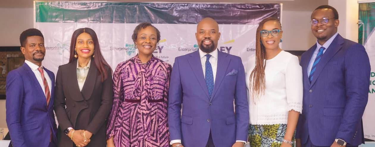 L-R: Head, Research, EnterpriseNGR, Omotayo Muritala; Associate partner at EY Parthenon, Olayinka Oyetunji; Chief Executive Officer, EnterpriseNGR, Obi Ibekwe; Director, Policy and Public Affairs, EnterpriseNGR, Lami Adekola; Company Secretary/Head, Corporate Services, EnterpriseNGR, Oluwole-Akinwale; and Head, Corporate Communications and Branding, EnterpriseNGR, Anthony Bidokwu, at the launch of their 2026 Macroeconomic Outlook in Lagos…recently