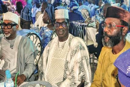 L-R: Senator Suleiman Sadiq Umar; Senator Ali Ndume; Borno State Governor, Prof. Babagana Zulum; Vice President, Senator Kashim Shettima; Emir of Kaiama, Alhaji Muazu Sheu Omar; Kwara State Governor, AbdulRahman AbdulRazaq; Speaker, Kwara State House of Assembly, Hon. Yakub Salihu Danladi; and