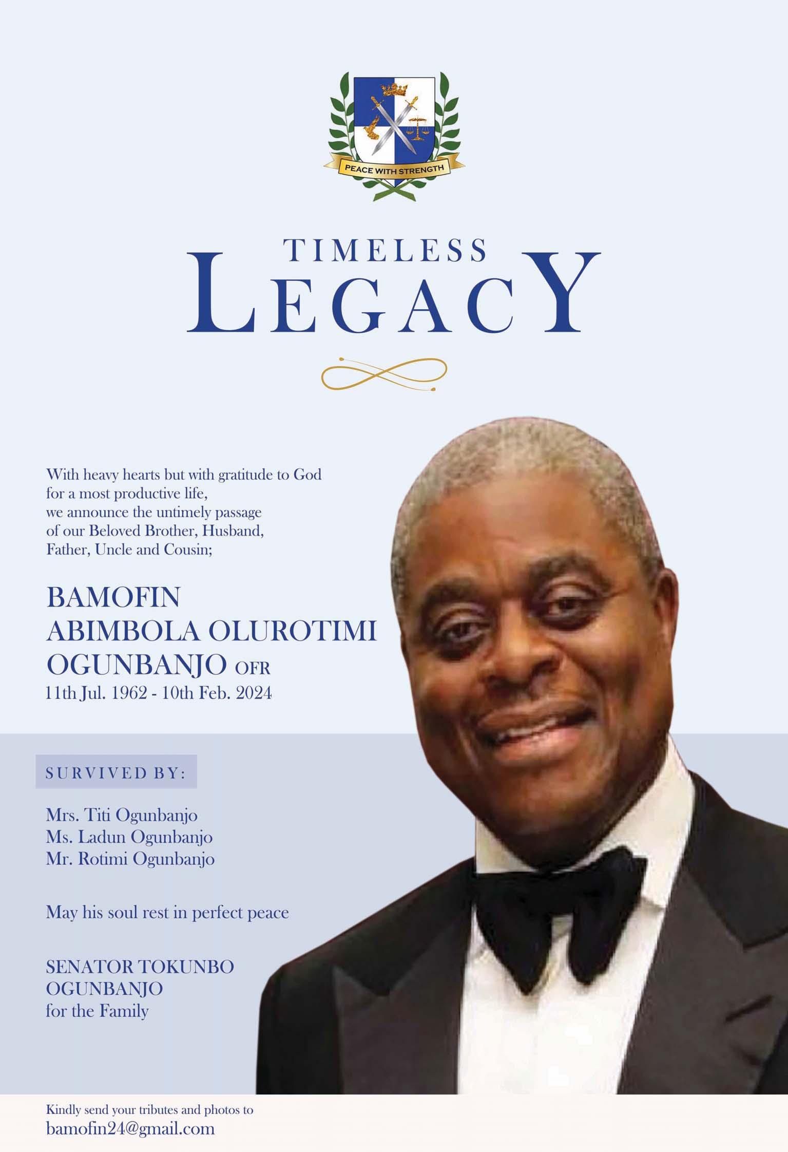 Dear Oluwarotimi, this valedictory forbids mourning, not because we are not pained,