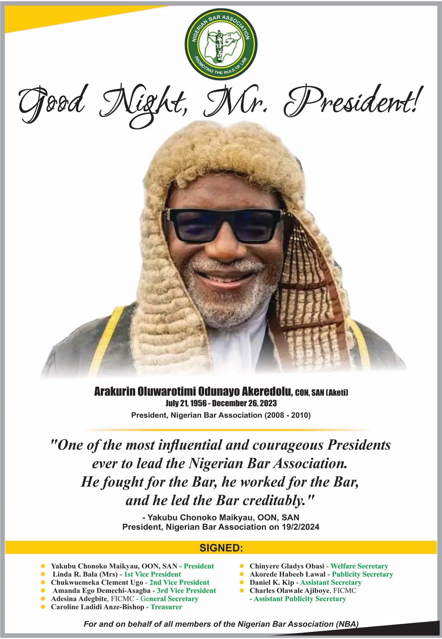 In his acceptance speech, Akpata paid tribute to the late Governor of Ondo State, Arakunrin Rotimi Akeredolu.