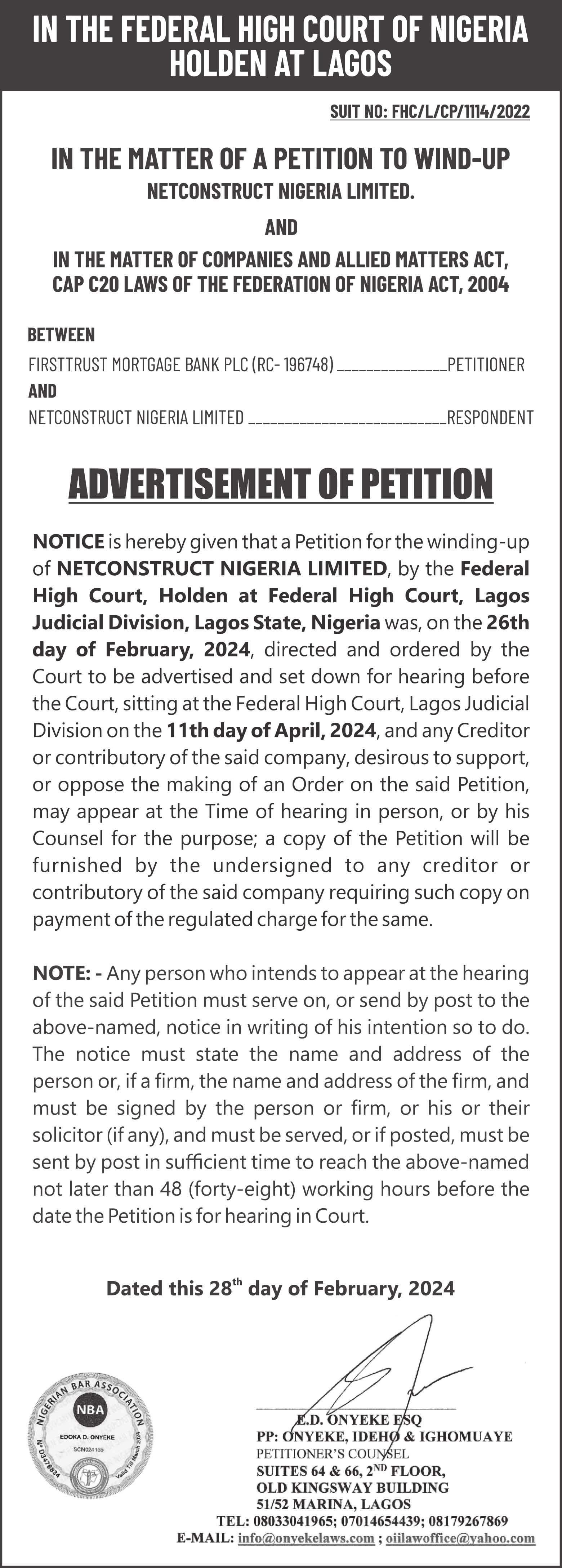 TRUTH & REASON Wednesday, February 28, 2024 Price: N400 Printed and Published in Lagos by THISDAY Newspapers Limited. Lagos: 35 Creek Road, Apapa, Lagos. Abuja: Plot 1, Sector Centre B, Jabi Business District, Solomon Lar Way, Jabi North East, Abuja . All Correspondence to POBox 54749, Ikoyi, Lagos. EmAiL: editor@thisdaylive.com, info@thisdaylive.com. TELEPhoNE Lagos: 0802 2924721-2, 08022924485. Abuja: Tel: 08155555292, 08155555929 24/7 ADVERTiSiNG hoT LiNES: 0811 181 3085 0811 181 3086, 0811 181 3087, 0811 181 3088, 0811 181 3089, 0811 181 3090. ENQUiRiES & BooKiNG: adsbooking@thisdaylive.com