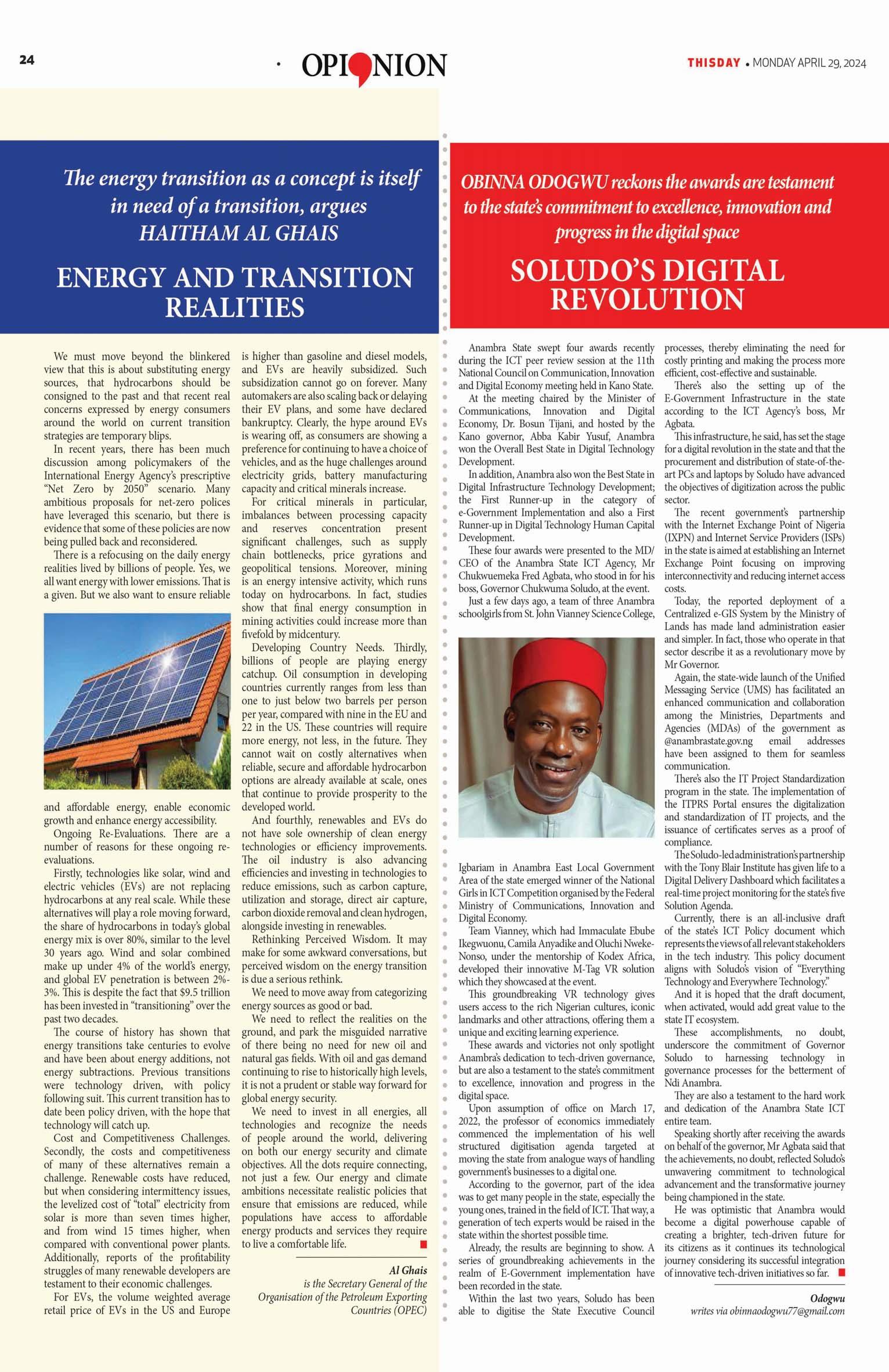 www.thisdaylive.com TRUTH & REASON Continued on page 5 Monday, April 29, 2024 Vol 29. No 10610. Price: N400