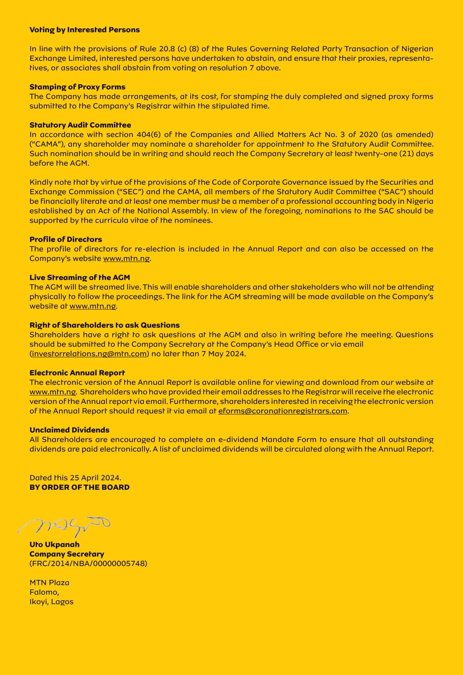 Shareholders of Zenith Bank Plc unanimously approved the restructuring of the Bank to a holding company during a court-ordered Extraordinary General Meeting (EGM) held virtually from Zenith Heights, Zenith Bank Plc, Victoria Island, Lagos, on Friday, April 26, 2024. In accordance with the Scheme of Arrangement dated March 28 2024, pursuant to Section 715 of the Companies and Allied Matters Act (CAMA), 2020 between the Bank and the holders of the fully paid ordinary shares of 50 Kobo