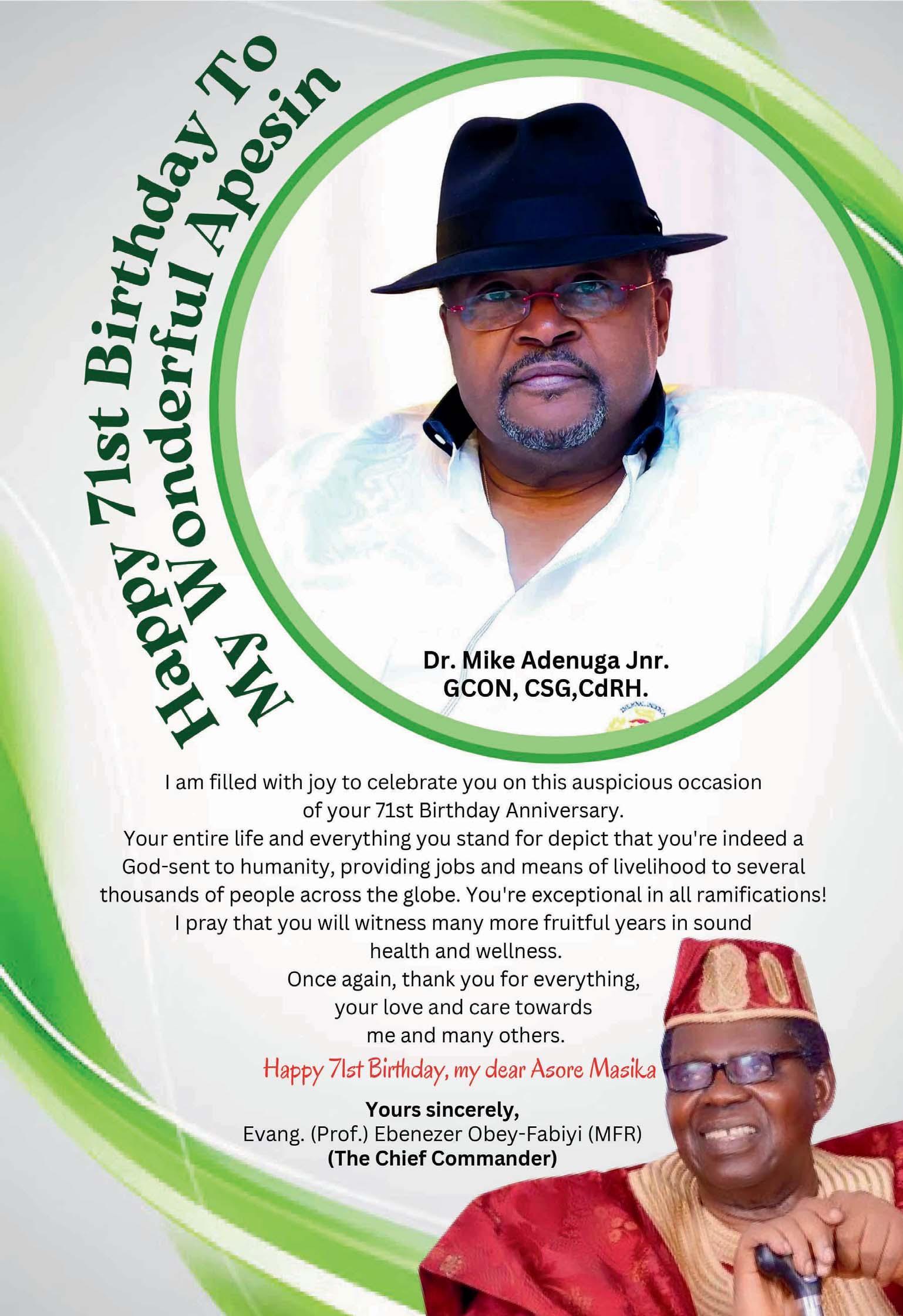 “IhaveservedabroadintheUnitedNations,andthiscareergavemeopportunitiesfor self-development,andthesehavepreparedmeforretirement;(foundedAlphaTrust InvestmentClubLtd).Thatwillbemyfull-timebusinessfromWednesday,May1...We havebeeninvestingandnowwewanttogointofull-timebusinessandwewillinthe next10yearsgiveDangotearunforhismoney" -FormerAnambraStateCommissionerof Police,AderemiAdeoye,promisestogiveAlikoDangote,arun for his money.