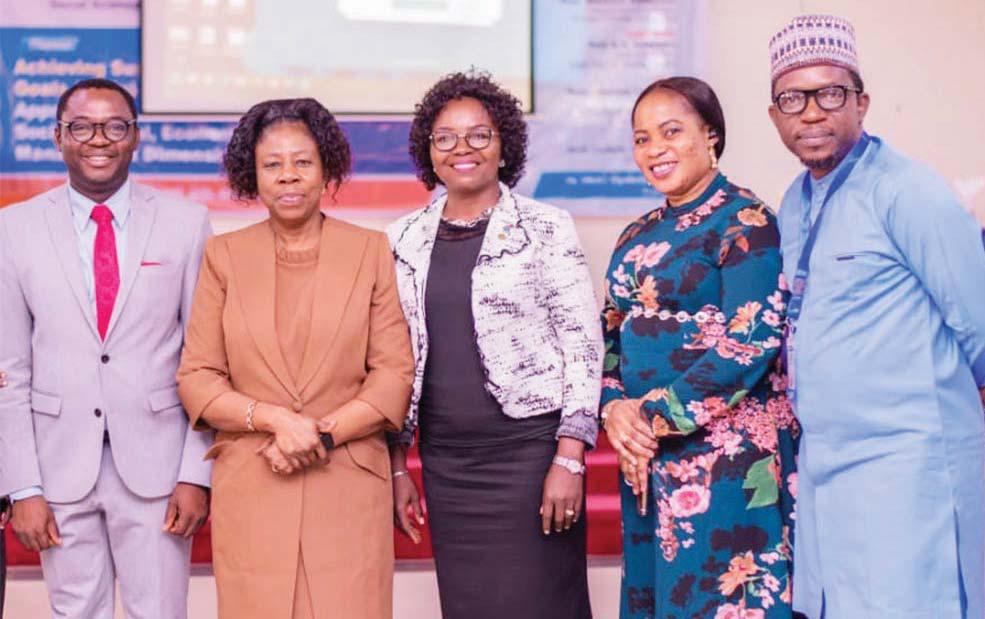 L-R: Country Director, Dream Sports Africa, Michael Anejo; Chairman, Lagos State Sports Commission, Sola Aiyepeku; General Consul of France in Lagos, Laurence Monmayrant; AFD Director for Nigeria, Xavier Muron; Director/HOD Co-curricular Services, Lagos State Ministry of Education, Olubunmi Sosanya; NBA Academy Africa Associate Technical Director, Joe Touomou; and NBA Nigeria Marketing and Communications Lead, Tobi Akinkunmi at the Jr. NBA & AFD Basketball Experience Training for Physical Education School Teachers and Coaches in Lagos