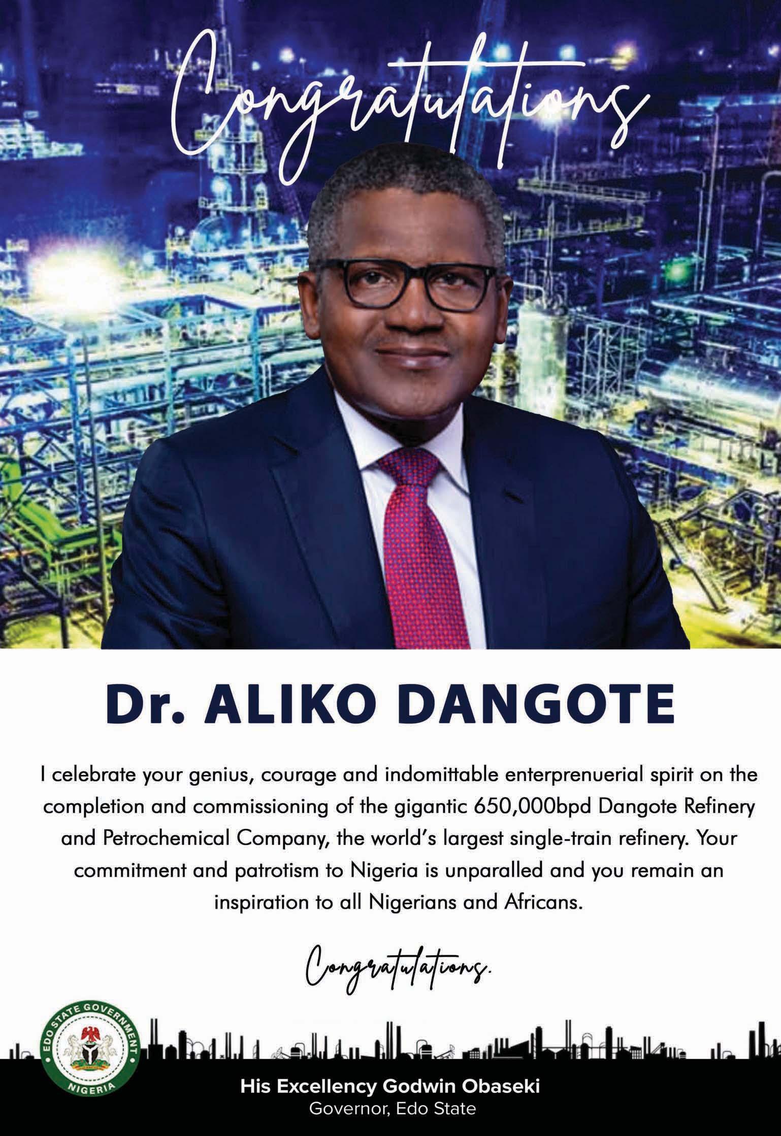 INAUGURATION OF THE MULTI BILLION DOLLAR DANGOTE PETROLEUM REFINERY...