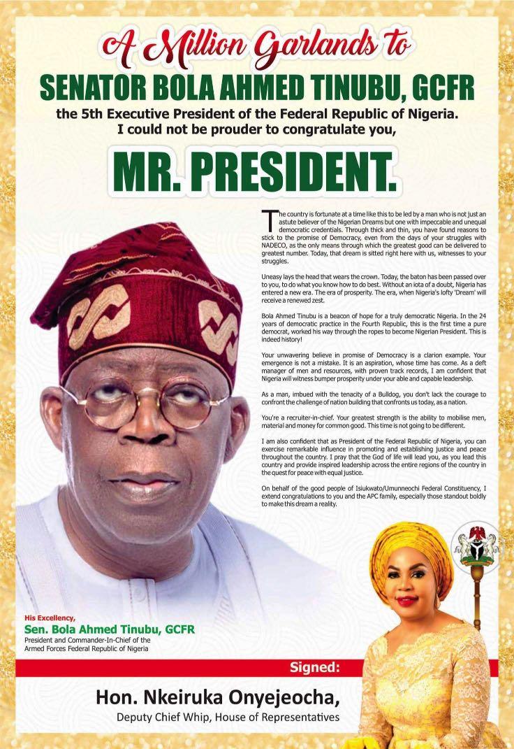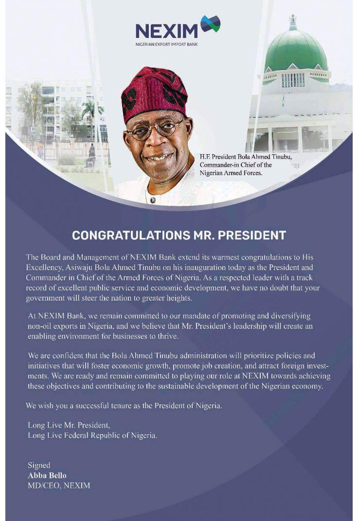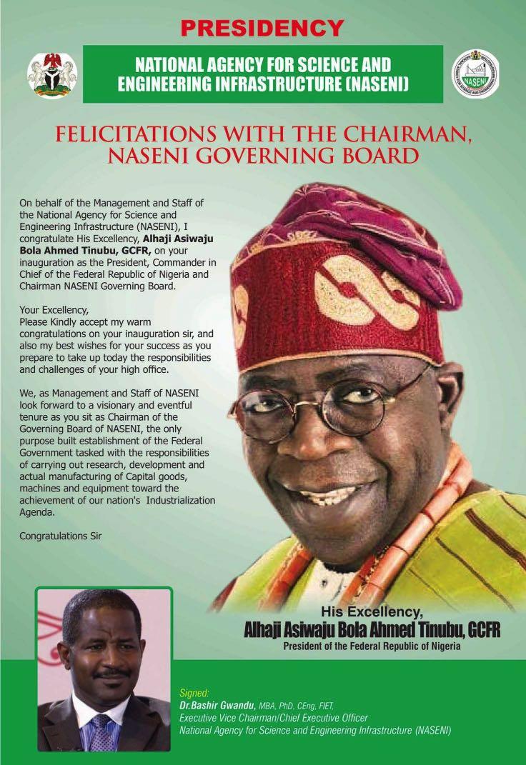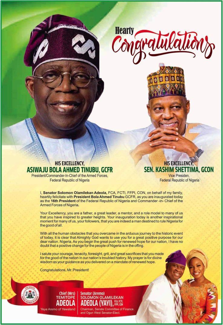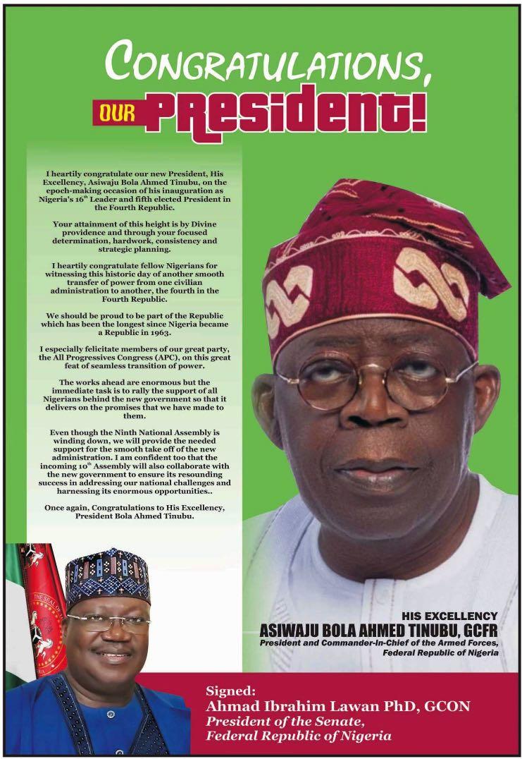 That was as the ninth Senate congratulated Tinubu and his vice, Kashim Shettima, on their impending inauguration.