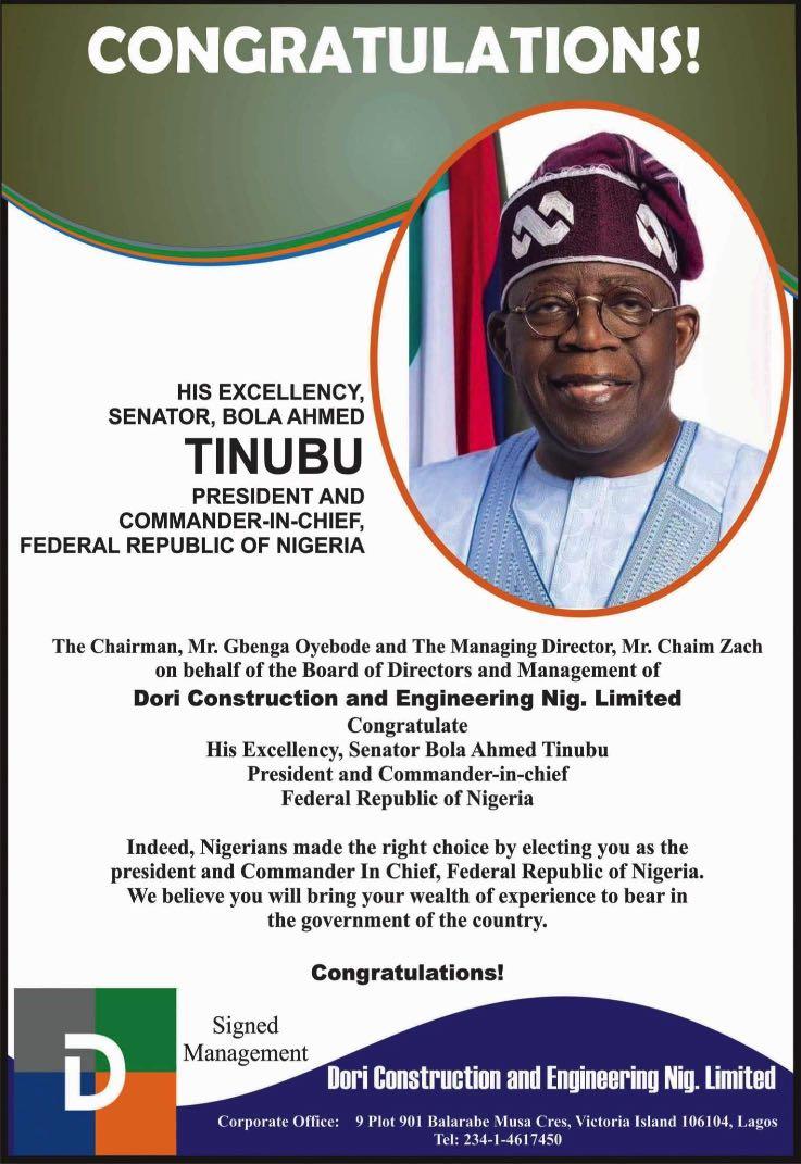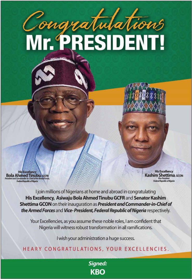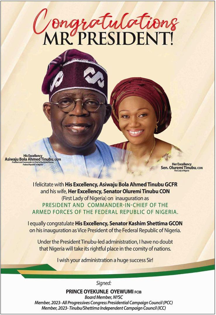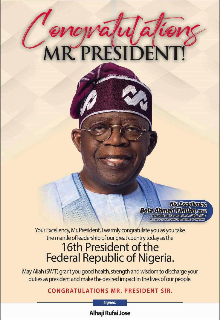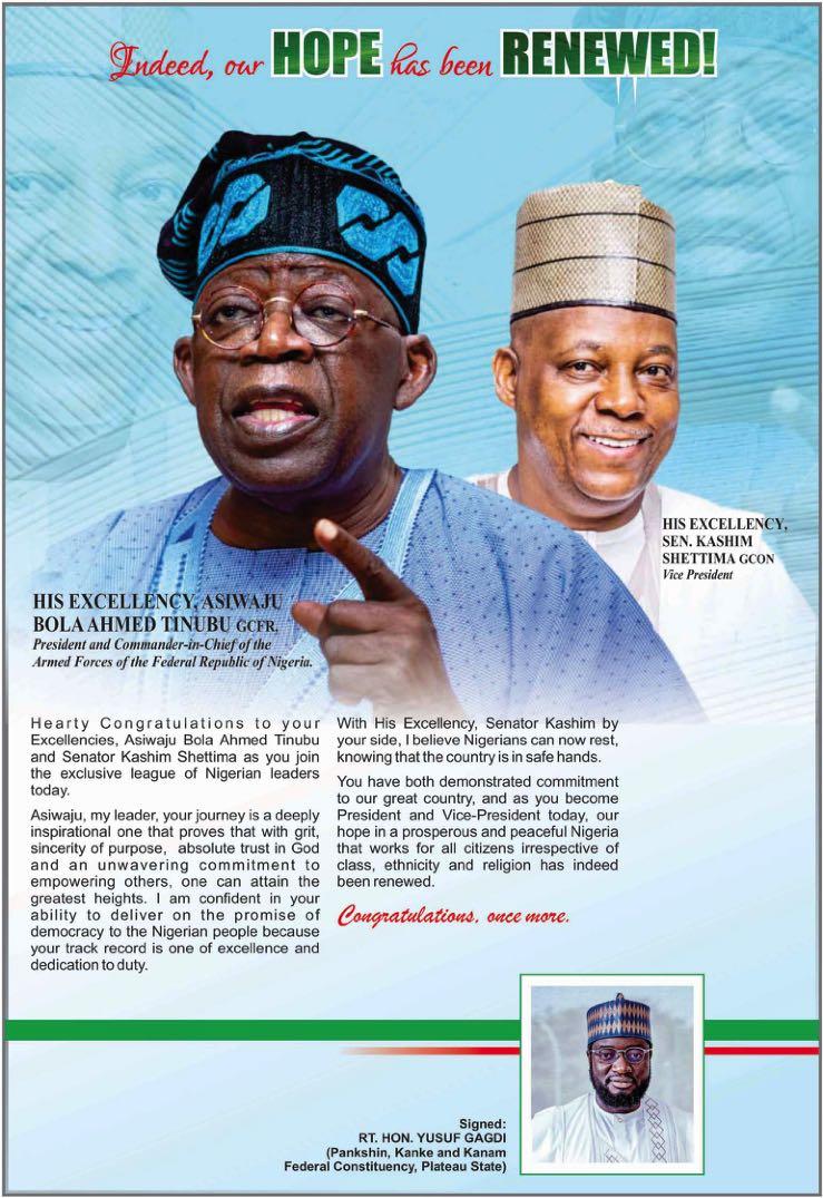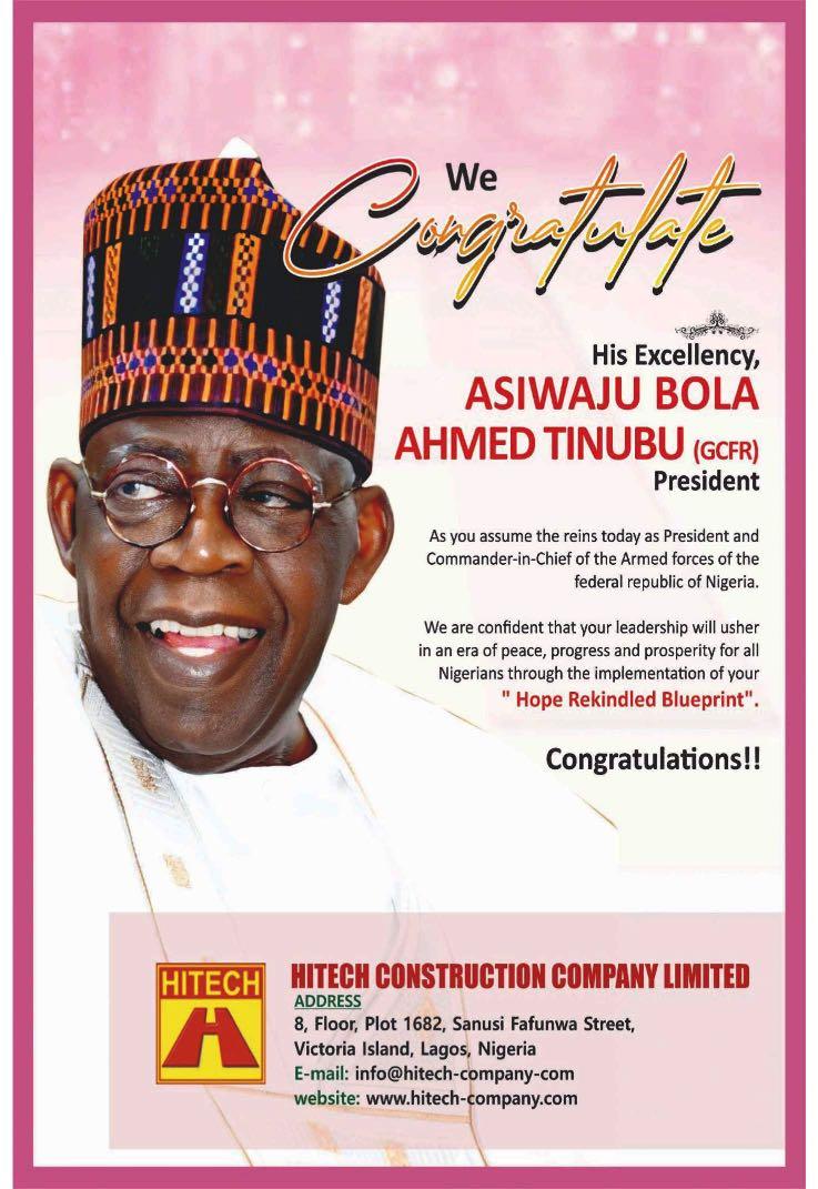 In Tinubu-Shettima, we are not expecting a perfect president and vice president, but at least it is a new dawn - a new beginning for a country in dire need of unity, peace, and progress. All Nigerians are beckoning on the new administration to create a new vision of Nigeria and work hard towards actualising that vision.