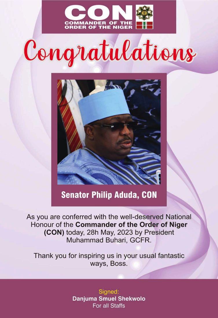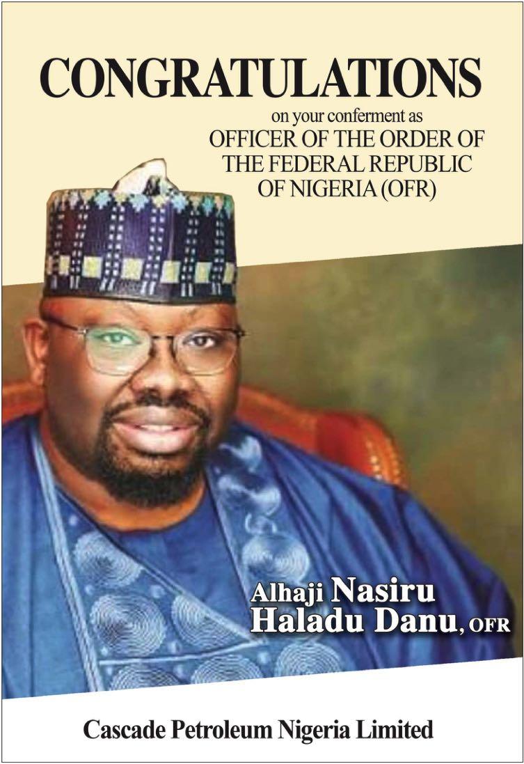 Republic (OFR) on 77 prominent individuals. Some of the recipients included former President, Nigeria Football Federation, Amaju Pinnick; Publisher of Leadership newspaper, Isaiah Ndah, who was honoured post-humously; former Managing Director, Niger Delta Development Commission (NDDC),Timi Alaibe; Maj. Gen Olayinka Kadiri; Dr. Pinheiro Adekunle Uthman; Sylvanus Ghasarah; Sulaiman Argungu; Gbenga Komolafe; Chief Isaac Shaahu; and Alhaji Nasiru Danu.