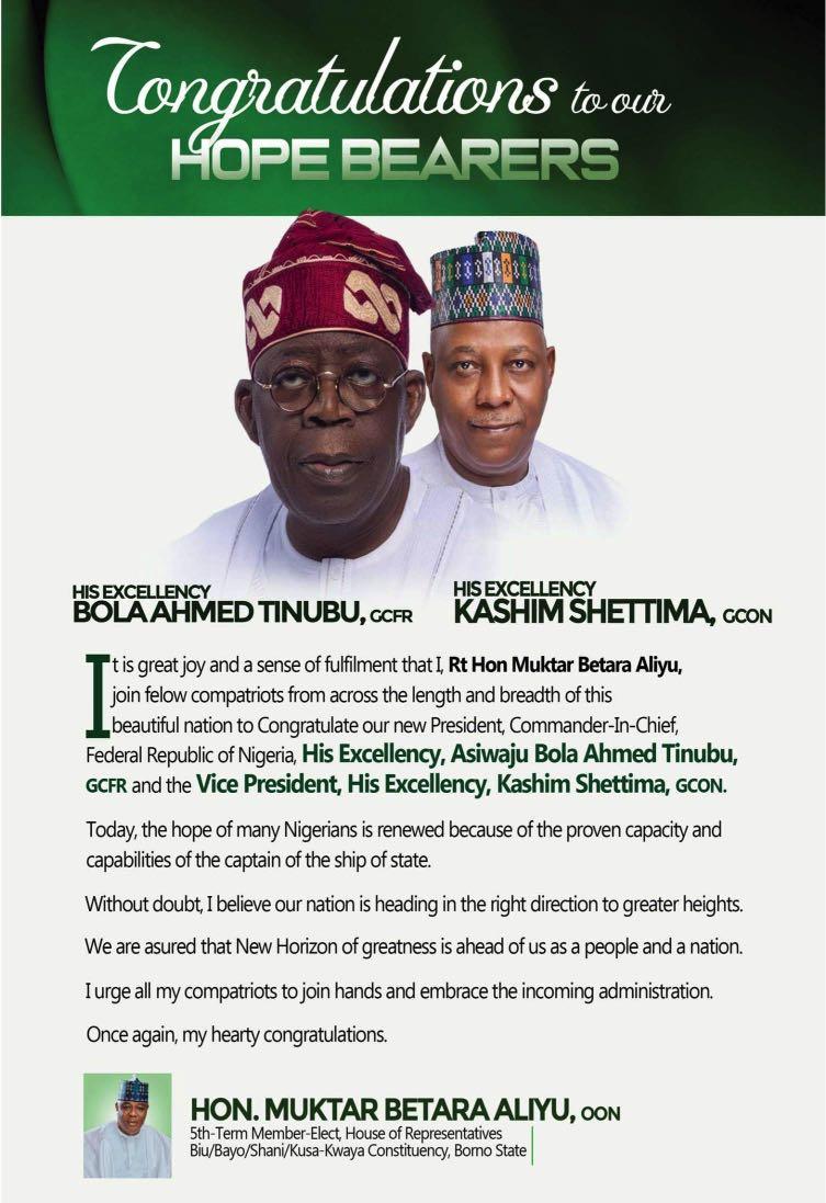 We recognise that the road ahead is bumpy and rough, but we trust the instinct of Nigerians who gave Tinubu-Shettima the mandate to drive them through this rugged terrain and their undeniable belief in their ability to take them to safety and progress.