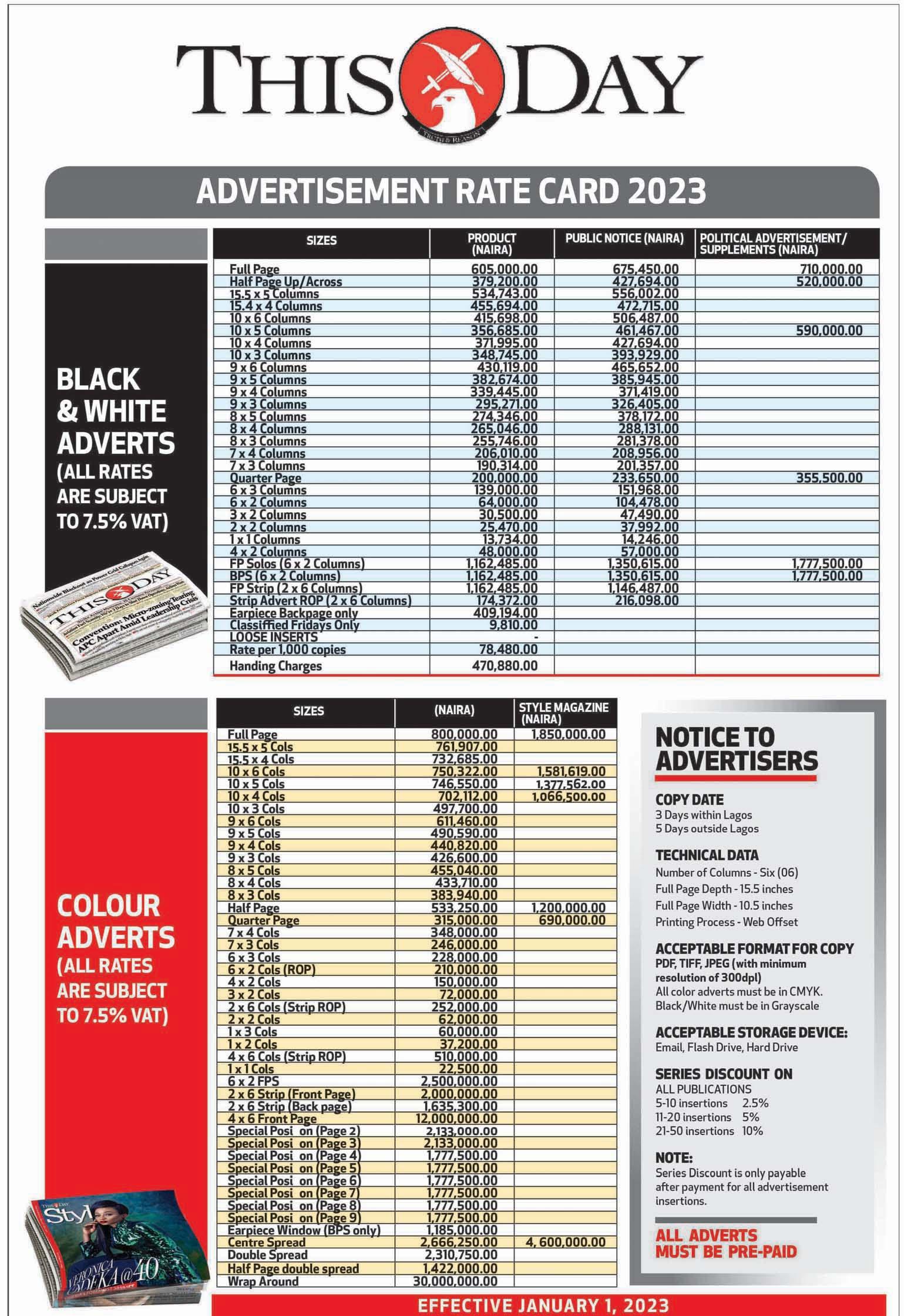 MISSILE TRUTH & REASON Tuesday, May 30, 2023Price: N250 Printed and Published in Lagos by THISDAY Newspapers Limited. Lagos: 35 Creek Road, Apapa, Lagos. Abuja: Plot 1, Sector Centre B, Jabi Business District, Solomon Lar Way, Jabi North East, Abuja . All Correspondence to POBox 54749, Ikoyi, Lagos. EMAIL: editor@thisdaylive.com, info@thisdaylive.com. TELEPHONE Lagos: 0802 2924721-2, 08022924485. Abuja: Tel: 08155555292, 08155555929 24/7 ADVERTISING HOT LINES: 0811 181 3085, 0811 181 3086, 0811 181 3087, 0811 181 3088, 0811 181 3089, 0811 181 3090. ENQUIRIES & BOOKING: adsbooking@thisdaylive.com