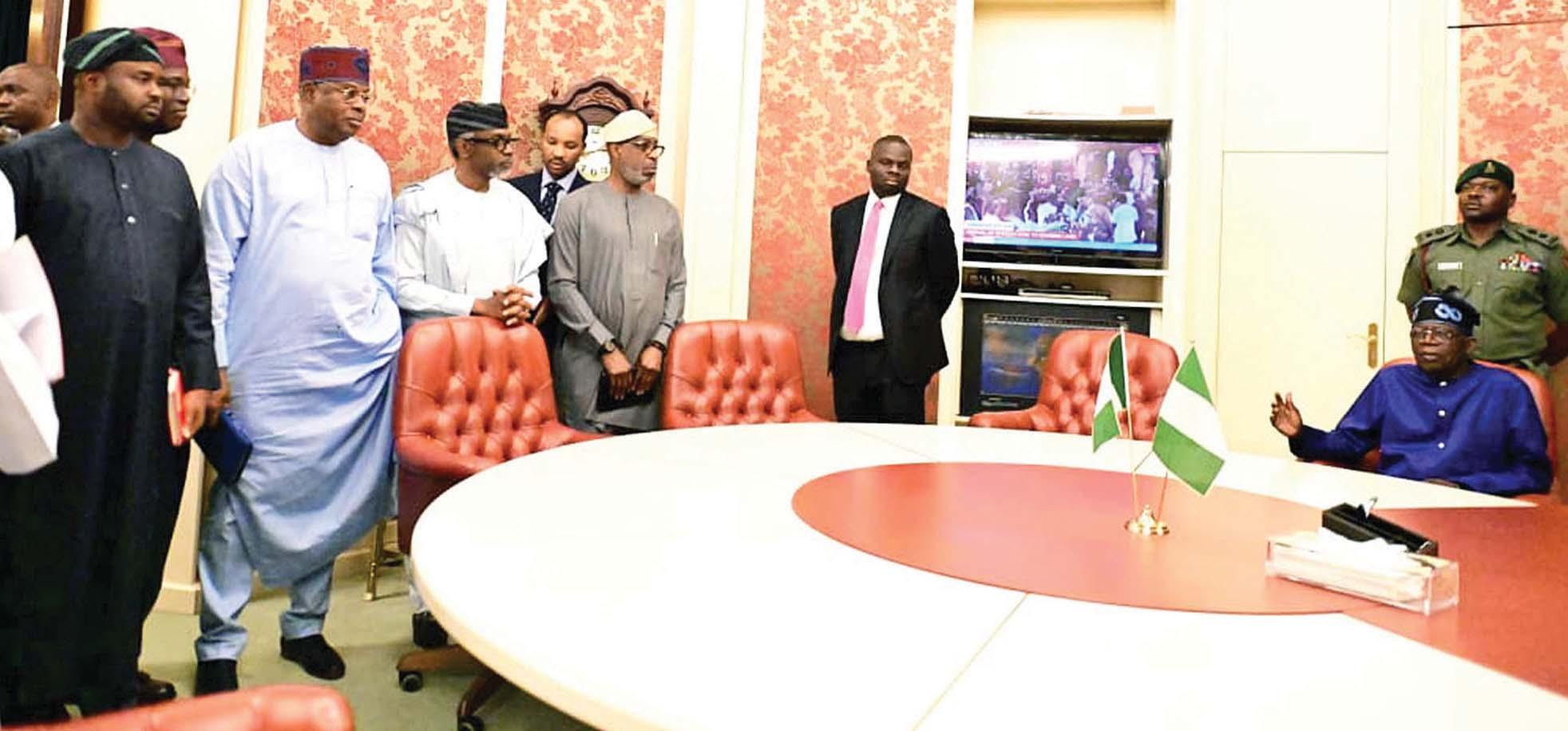 However, Tinubu; the Governor of the Central Bank of Nigeria (CBN) and the Group Chief Executive Officer of the Nigerian National Petroleum Company Limited (NNPC), Mele Kyari, yesterday met to strategise on how to engage members of the Nigeria Labour Congress (NLC) and the Trade Union Congress (TUC), to resolve the looming agitation against the phasing out of the petrol subsidy regime, which was among the pronouncements by the president on Monday, reliable Villa sources told THISDAY.