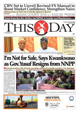 THURSDAY, THISDAY 8 NEWS Group News Editor: Goddy Egene Email: Goddy.egene@thisdaylive.com, 0803 350 6821, 0809 7777 322, 0807 401 0580 Continues online