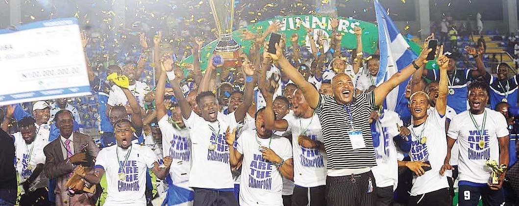 Enyimba International FC of Aba players and officials celebrating winning the 2022/23 NPL Championship Super 6 Playoffs at the Mobolaji Johnson Arena in Lagos...last night