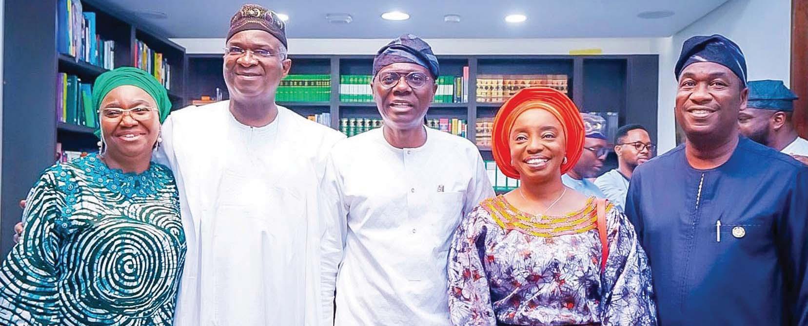 L-R: Former Lagos State governor and immediate past Minister of Works and Housing, Mr. Babatunde Fashola, SAN; Chief of Staff to the President, Hon. Femi Gbajabiamila; President Bola Tinubu and his son, Yinka; the National Security Adviser, Malam Nuhu Ribadu, and the Lagos State Deputy Governor, Dr. Obafemi Hamzat, at the Eid prayer ground, Lagos, in commemoration of this year's Eid-el-Kabir... yesterday