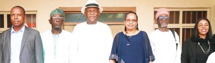 L-R; Chairman, Parent-Teacher Association (PTA) of Powerfields School, Matthew Amadi; member, Governing Council, Powerfields Group of Schools, Akodu Kamardeen; Chairman, Governing Council, Powerfields Group of Schools, Tope Shonubi; Daughter of Bright Gyimah, Caroline Uzoigwe; member of Governing Council, Muhtar Bakare and School Administrator, Ngozi Emezue during the official inauguration of Bright Gyimah Centre for innovation at the Powerfields Group of Schools, Egbin, lkorodu, Lagos...weekend