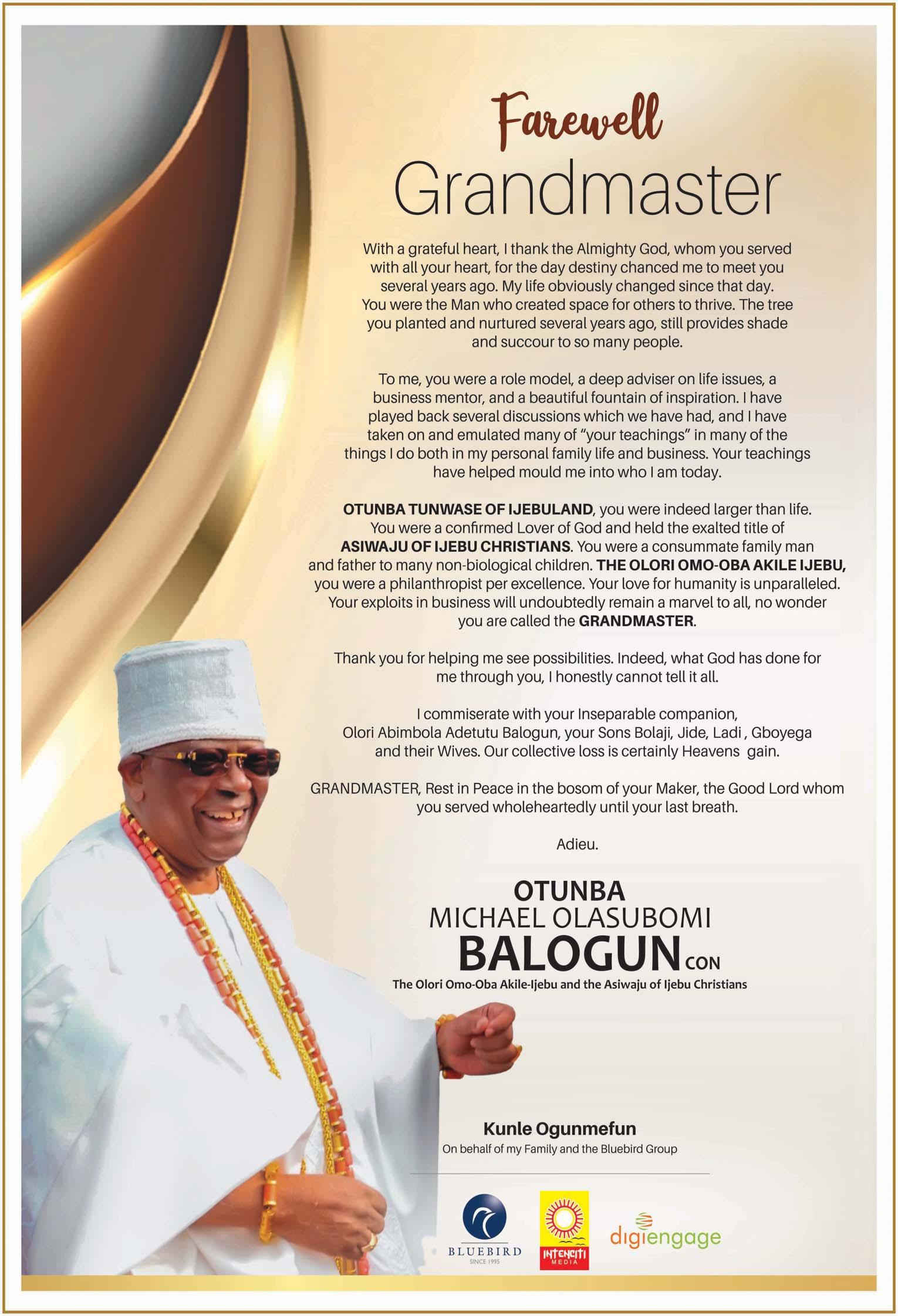 SERVICE OF SONGS IN HONOUR OF OTUNBA SUBOMI BALOGUN...